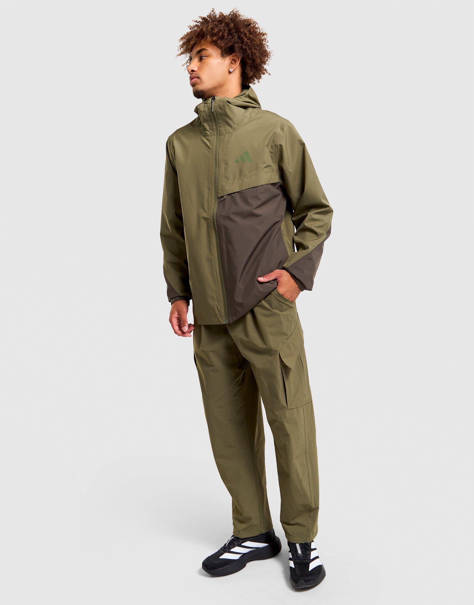 Stay out longer with the Men's Adidas Terrex Colour-Block Rain Jacket in olive and black - a lightweight, waterproof outer layer built for unpredictable conditions on and off the trail. The rain-resistant construction sheds moisture efficiently while the full-zip design and colour-block panelling give it a bold, outdoors-meets-streetwear aesthetic. The olive and black colourway is versatile and on-trend, making this men's Adidas Terrex rain jacket as wearable in the city as it is on the mountain. A functional outerwear essential for men who don't let the weather decide their plans.