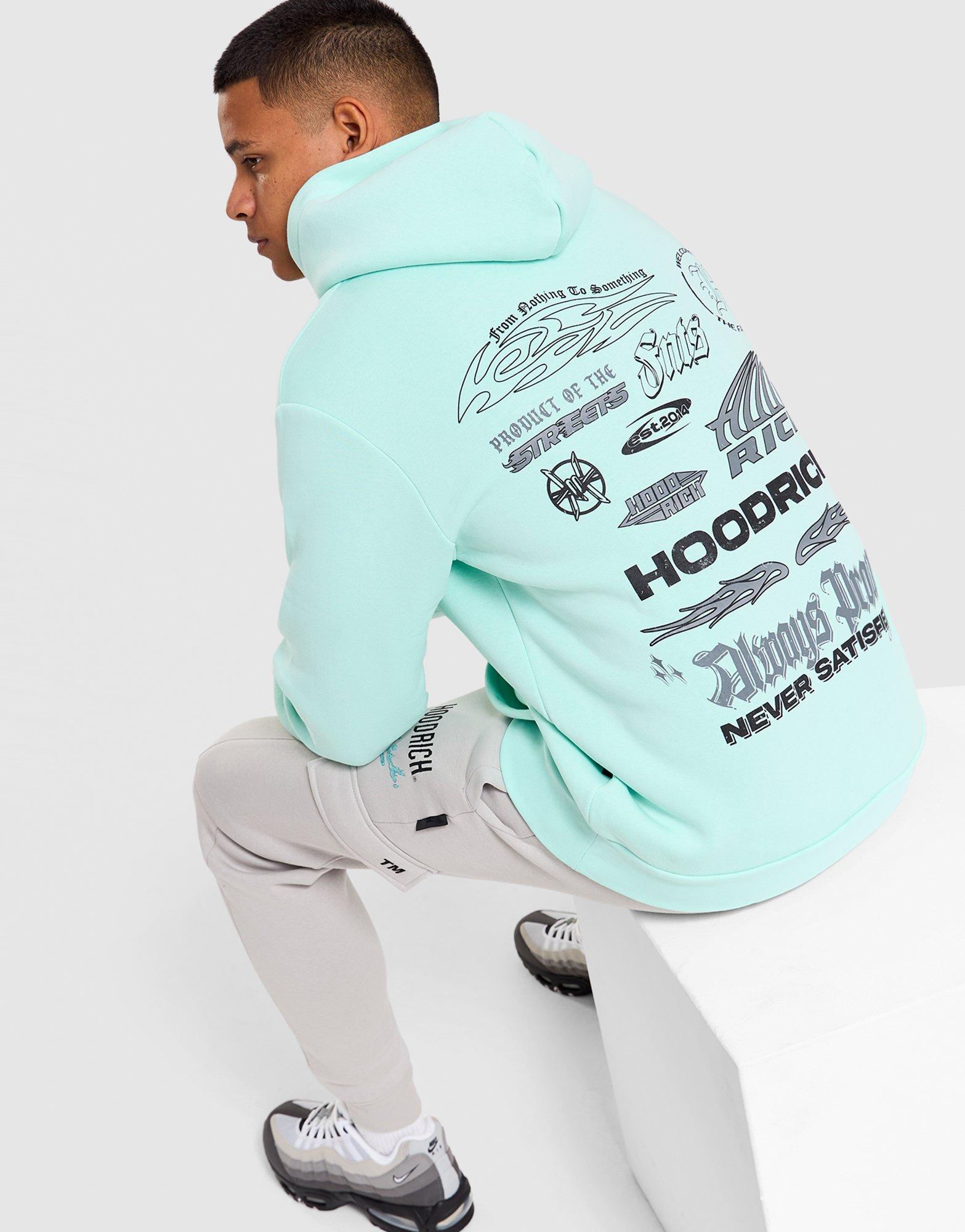Exclusively at JD, the men's Hoodrich Chromode Over-Head Hoodie in Mint with Black is the streetwear fleece that leans into bold colour with a technical graphic identity. The Chromode graphic detailing across the chest and the Mint with Black colourway give it a high-energy, eye-catching look that is unmistakably Hoodrich, while the soft fleece construction and relaxed pullover fit deliver the comfort that earns daily wear. Ribbed cuffs and hem and a kangaroo front pocket round out the practical details on a men's Hoodrich hoodie worth adding to your rotation. Style Code: HR02260106