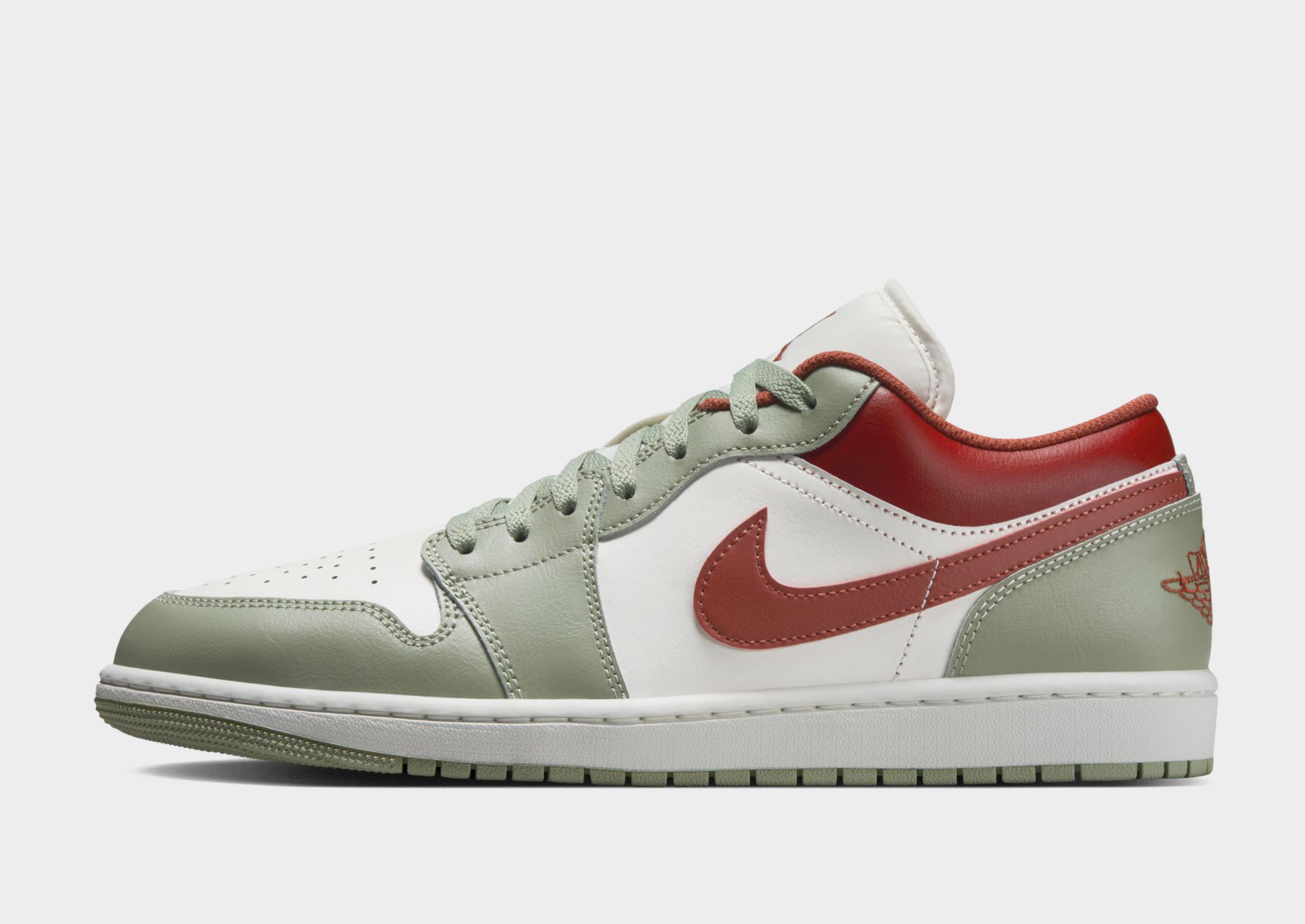 Keep your rotation iconic with the epitome of sneaker culture: the Air Jordan 1 Low. Born from the collaboration between Nike and basketball legend Michael Jordan in 1985, the AJ1 changed the game forever, shattering conventions with bold colours and silhouettes. In a Green colourway with Sail details, these low-top shoes are crafted from a leather, synthetic leather and textile blend across the upper for support. Underfoot, the foam midsole combines with Nike Air cushioning for lightweight comfort, while the durable rubber outsole has pivot circles for retro-inspired traction. With a padded ankle collar and perforations on the toe, these kicks are finished off with the Swoosh and Air Wings logo to the sidewalls and the iconic Jumpman to the tongue. Decades later, the AJ1 remains an icon of style and athleticism, transcending generations with its timeless design and legendary status. Style Code: 553558-133