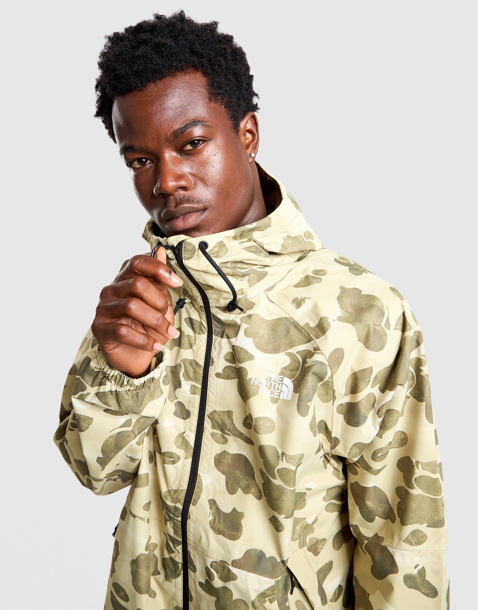 Brave the elements in this men's The North Face AOP Antora Rain Jacket. Designed with a standard fit and rain-resistant construction, it features camo all-over print with black accents for tactical outdoor style. The lightweight fabric offers protection from wind and rain on trails or in the city. Built with The North Face quality and weather-ready technology, this jacket delivers performance with bold pattern.