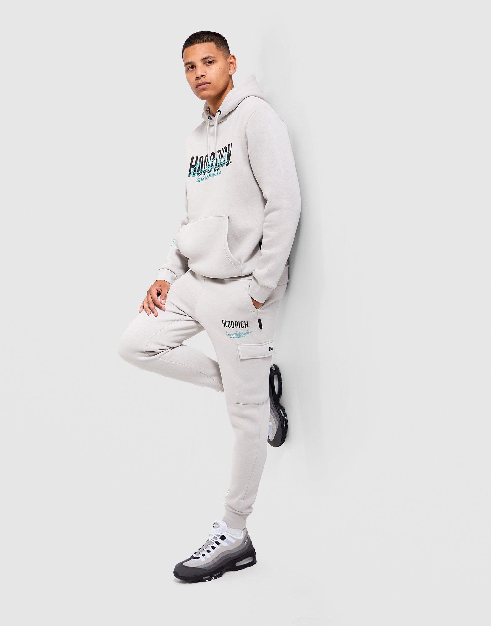 Exclusively at JD, the men's Hoodrich Flames Jogger Pants in Grey with Mint and White are the co-ord match for the Flames Hoodie in the same cool, neutral colourway. Made from soft fleece with a relaxed leg fit and drawcord waistband, they offer comfortable, everyday wearability alongside the bold Flames graphic print running down the leg in Mint and White. Pair them with the matching Hoodrich Flames Hoodie for the full co-ord or wear them solo as a statement streetwear bottom. Style Code: HR02260105