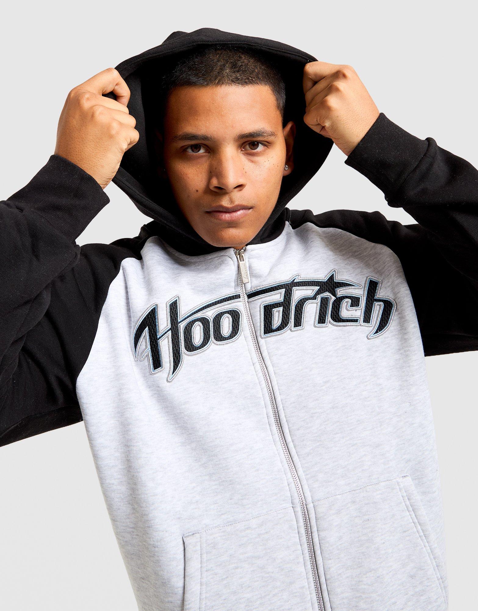 Stay warm and on-trend with this men’s Hoodrich Galaxy Full Zip Hoodie, exclusive to JD. The full zip design and long sleeves with ribbed cuffs deliver a snug, secure fit. Its grey colourway with bold colour-blocking adds a modern edge to your casual wardrobe. Crafted for standard comfort, it pairs perfectly with Hoodrich track pants for a complete streetwear look. Style Code: HR01261008