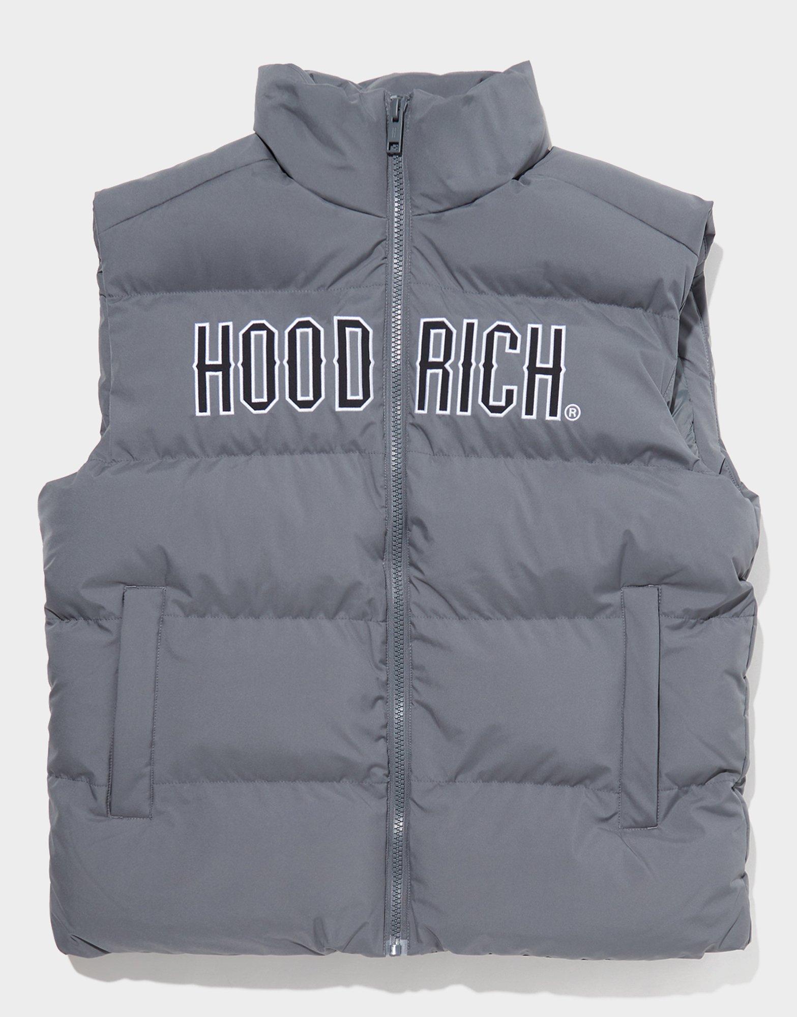 Layer up in style with this men's Hoodrich Splitter Padded Vest, exclusive to JD for high-brand-read streetwear appeal. The padded design delivers warmth and a locked-in fit. Finished in a grey colourway with white and black detailing, it brings bold style to your cold-weather rotation. This standard-fit vest is built for those who want to make a statement. Style Code: HO02260004