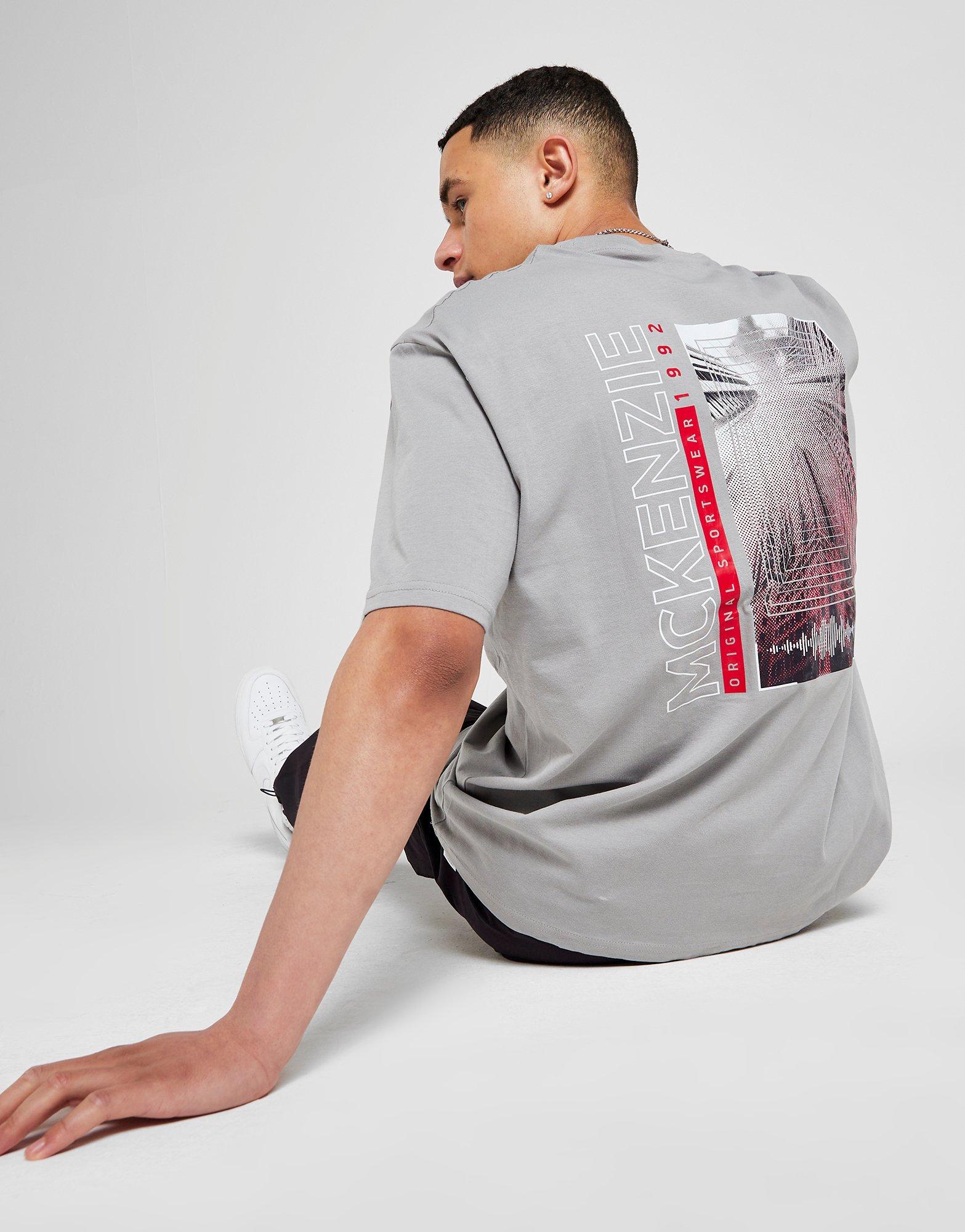 Freshen up your street-ready staples with this men's Mercury T-Shirt from McKenzie. In a Grey colourway, this tee is cut from soft, durable cotton fabric for lasting comfort. It features a ribbed crew neckline and short sleeves for easy wear, and is signed off with a graphic print to the back and McKenzie branding on the chest. Machine washable. | Our model is 6'0" with a 36" chest and wears a size M.__