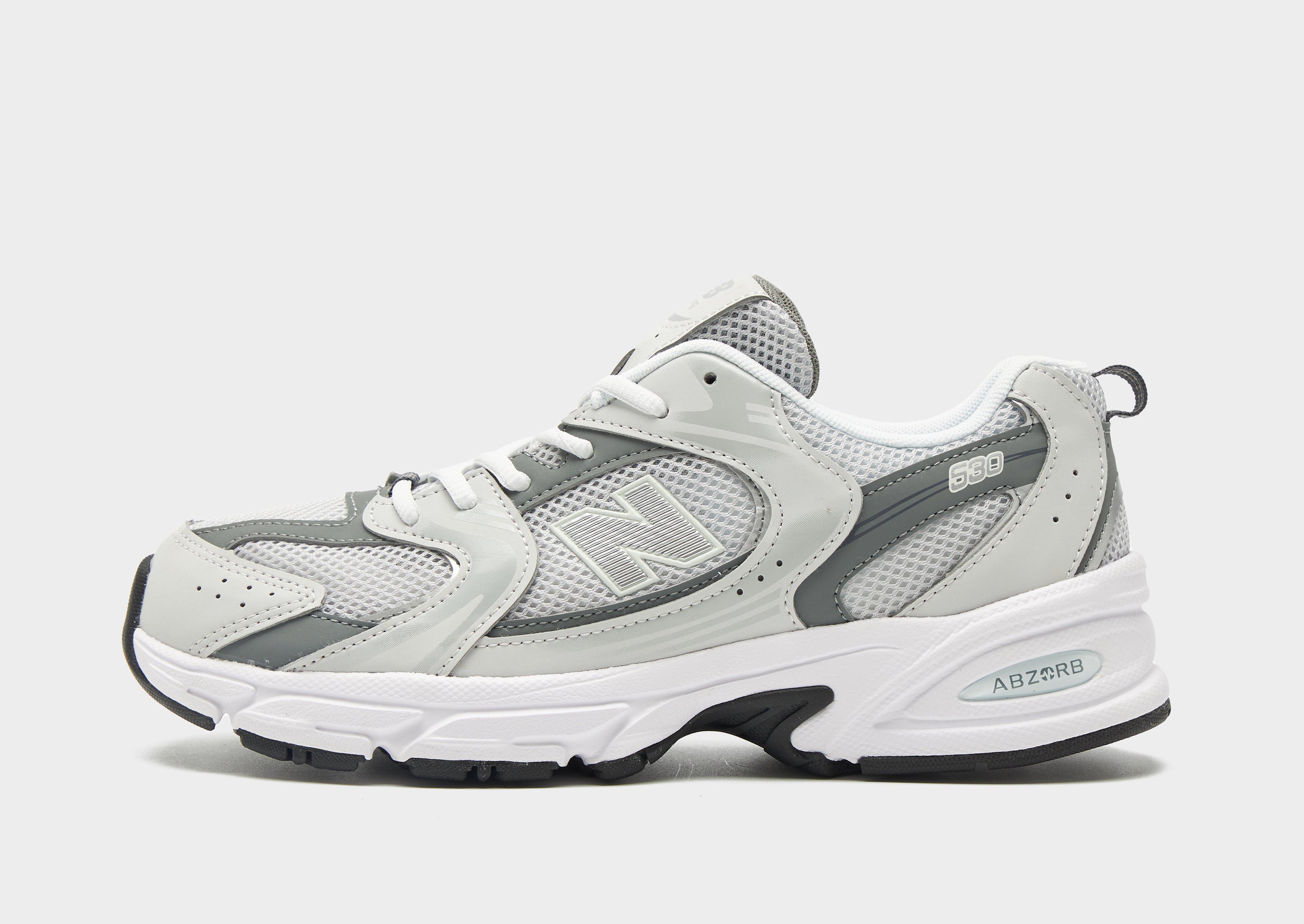 Level up your off-duty rotation with these junior's 530 shoes from New Balance. Bringin' an old-school running silhouette to your game, these JD-exclusive, lightweight sneakers have a Grey upper that features a smooth textile and overlaid suede panels. With a tonal lace-up fastening and plush ankle collar for step-in comfort, they're sat on a flared midsole for everyday cushioning. With a bold rubber outsole that runs up the heel, these kicks are finished off with an oversized 'N' logo to the sidewall and New Balance branding to the tongue. Style Code: GR530CB