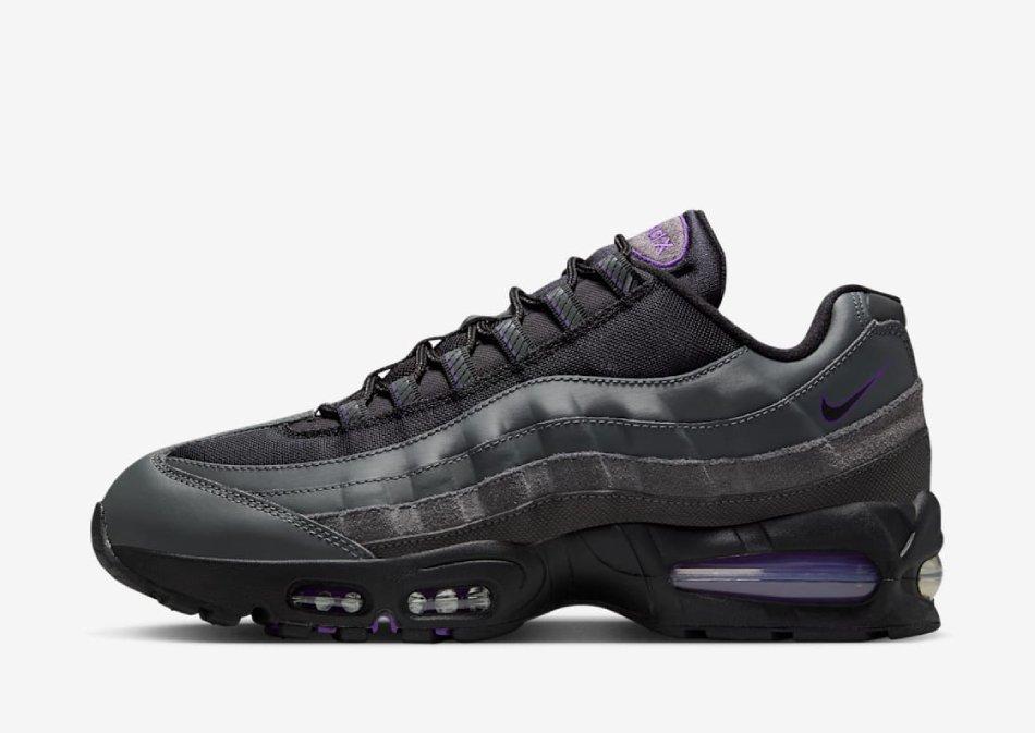 Step out in a Swoosh OG with these men's Air Max 95 '110' big bubble shoes from Nike. Landing in a Grey colourway with Purple details, these JD-exclusive sneakers have airy mesh through the upper with real and synthetic leather for lasting wear. With stitched overlays to create the iconic wavy design lines, they have a lace fastening with a low-cut, padded ankle collar for a secure fit. They have visible Air units underfoot to cushion every step, with flex grooves in the midsole for a natural step. They have a tough rubber outsole for grippy traction, and are signed off with iconic Nike branding throughout. Style Code: IH1228-001