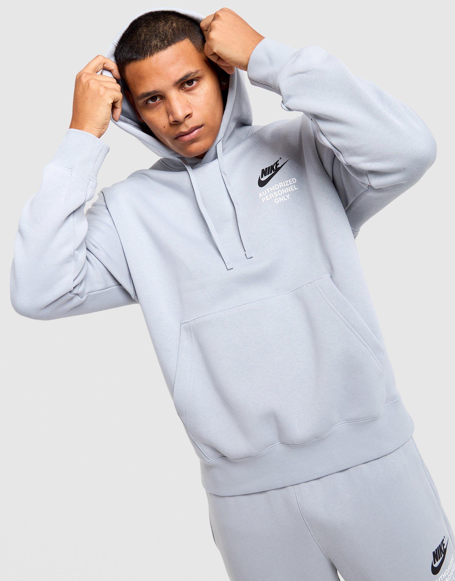 Exclusively at JD, the men's Nike Authorized Over-Head Fleece Hoodie in Light Grey with Black gives the Authorized range a clean, tonal colourway that works across every season. Made from soft fleece with a pullover construction, kangaroo front pocket, and relaxed fit, it delivers the warmth and everyday comfort expected from a men's Nike fleece hoodie - with the added appeal of JD exclusivity. The Light Grey base with Black contrast detailing is understated and versatile, easily paired with the matching Authorized Fleece Pants for a polished co-ord. Style Code: IV1586-012