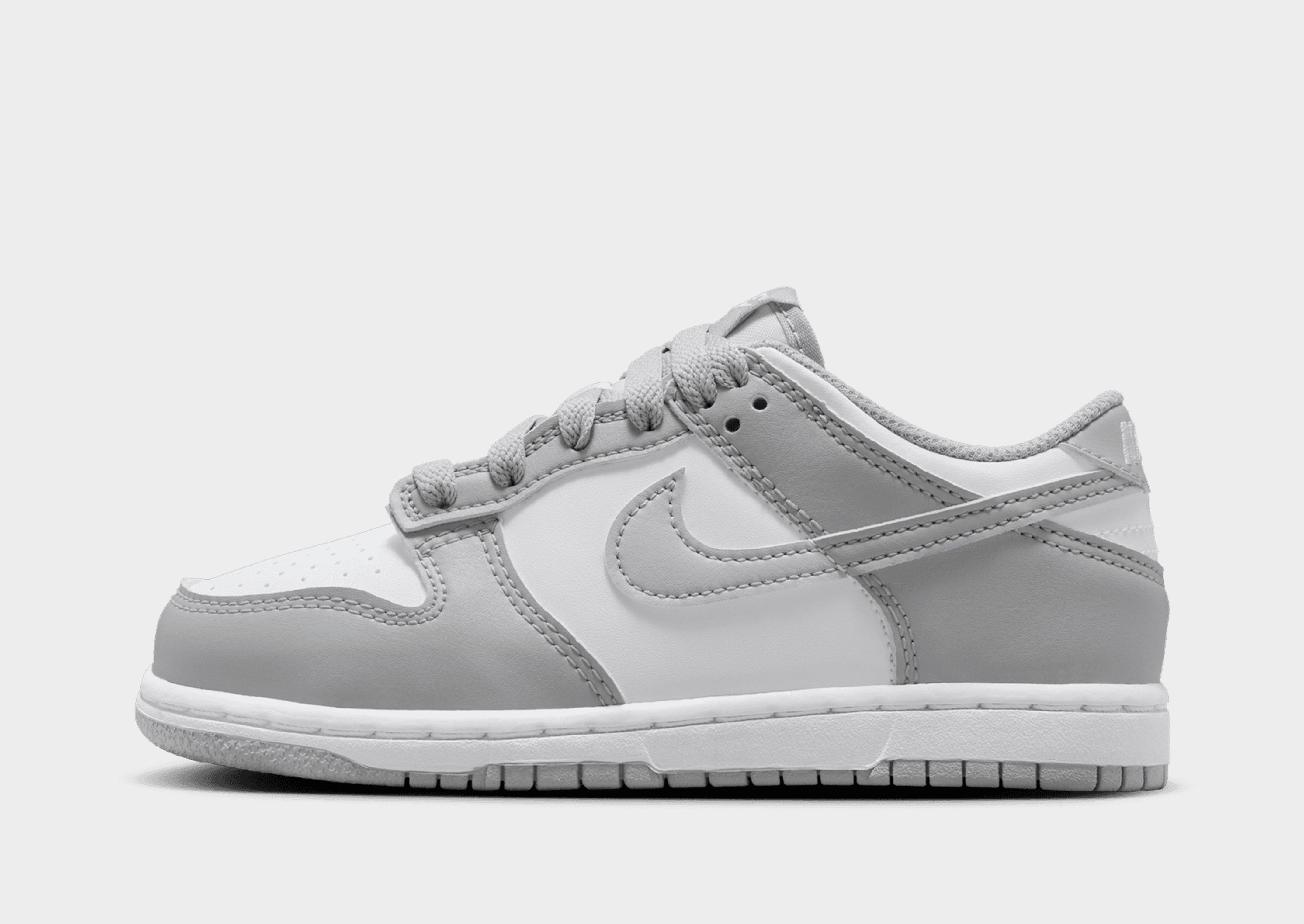 Clean, classic, and built to last - the Nike Dunk Low Children's in white with smoke grey details is a timeless kids' sneaker that brings the iconic court silhouette to sustainable construction. The durable build and foam midsole deliver comfortable support for active children, while the classic white and smoke grey colourway keeps it versatile and wearable across every occasion. A reliable children's Nike Dunk Low for parents who want quality and style in one package.