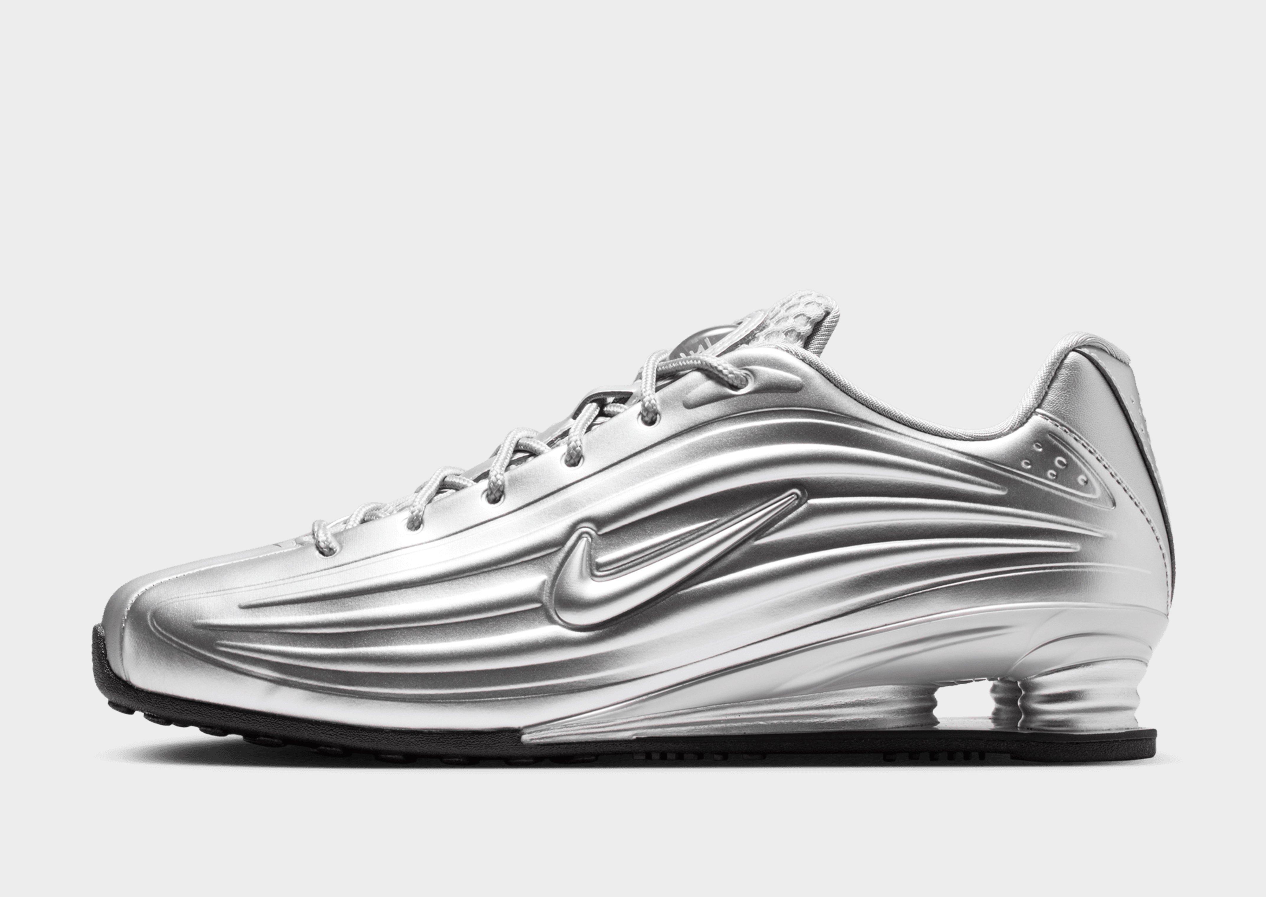 The Nike Shox Z is the retro runner reimagined for women who want their footwear to do the talking. Built on a fresh take on Nike's iconic column design, it delivers responsive cushioning underfoot while keeping the profile sleek, low-cut and firmly fashion-forward. The slim, stitchless upper brings a clean, refined finish that sits somewhere between sporty and sartorial - an easy win for street-ready styling. A modified circular Waffle outsole rounds out the build with reliable everyday traction. Finished in Silver with Black and Metallic Silver details, this is a Nike women's lifestyle sneaker that carries the heritage of Shox into a whole new era.
