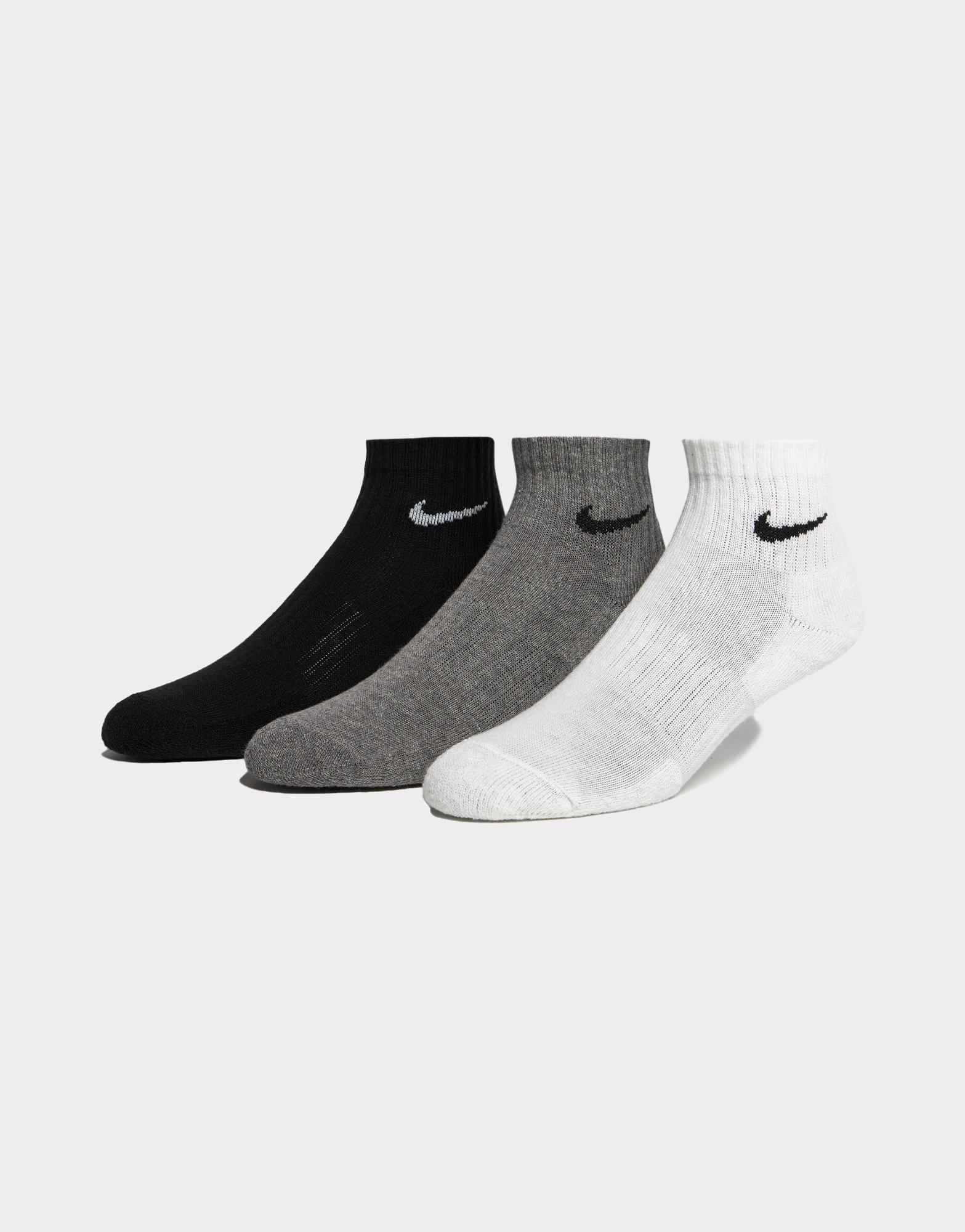 Upgrade your comfort with this 3 pack of Mid Crew Socks from Nike. Coming in a Black, Grey and White colourway, these mid-crew length socks are built from a soft poly cotton blend with added stretch to give you maximum comfort. They feature heal-to-toe cushioning, arch support, and a linked toe seam for a smooth feel. They're signed off with the signature Swoosh logo stitched to the side of the sock.