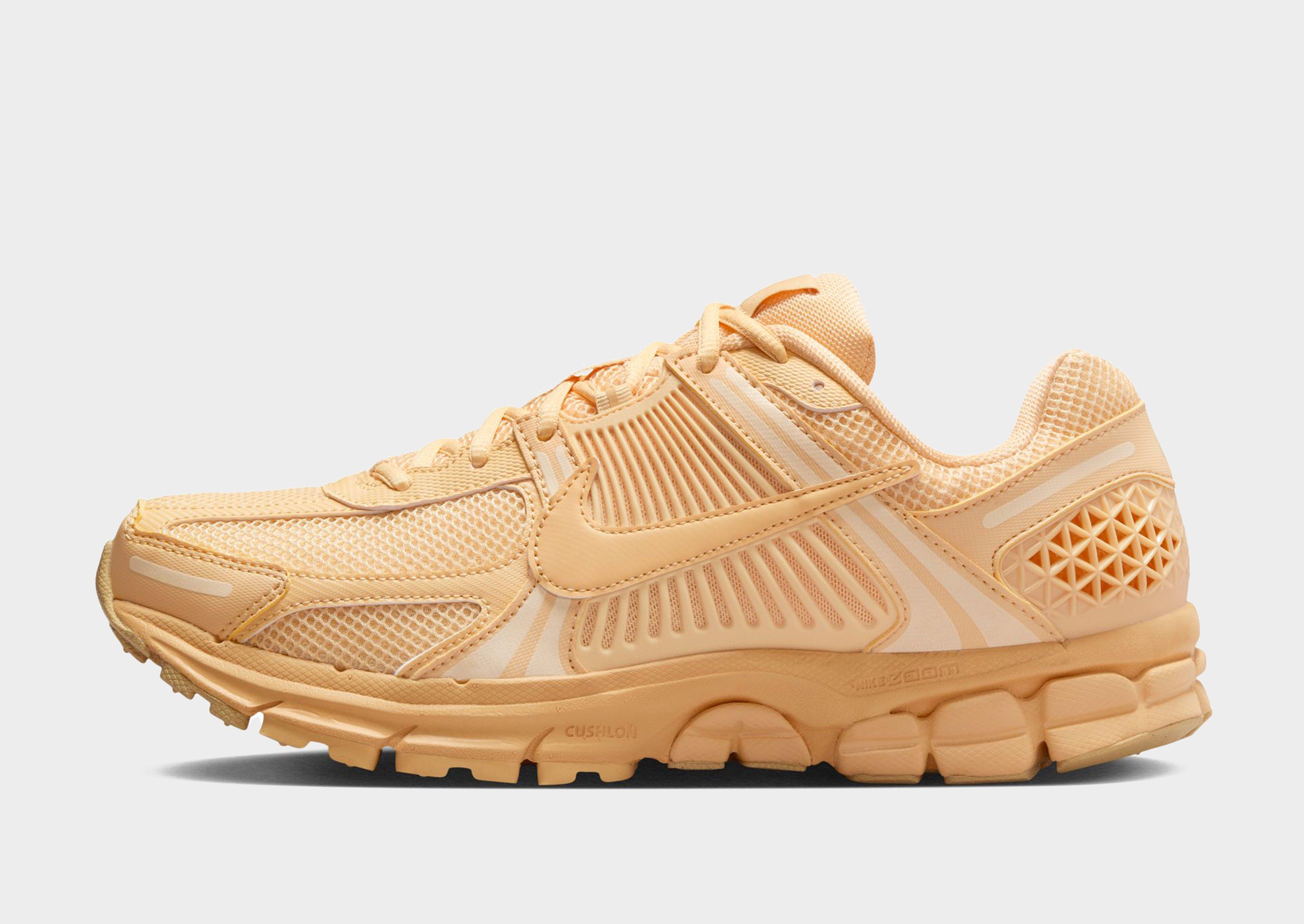 Retro running hits all-new heights with these men's Zoom Vomero 5 shoes from Nike. Landing in a Gold colourway with tonal details, this modern take on early '00s sneakers have a breathable mesh upper with TecTuff and utilitarian overlays for a durable and structured fit. Equipped with extra padding at the collar and tongue for comfort, they're sat above Zoom Air cushioning in the foam midsole for a super responsive, lightweight ride. Finished off with a solid rubber outsole and signature Swoosh logos. Style Code: HF5493-200