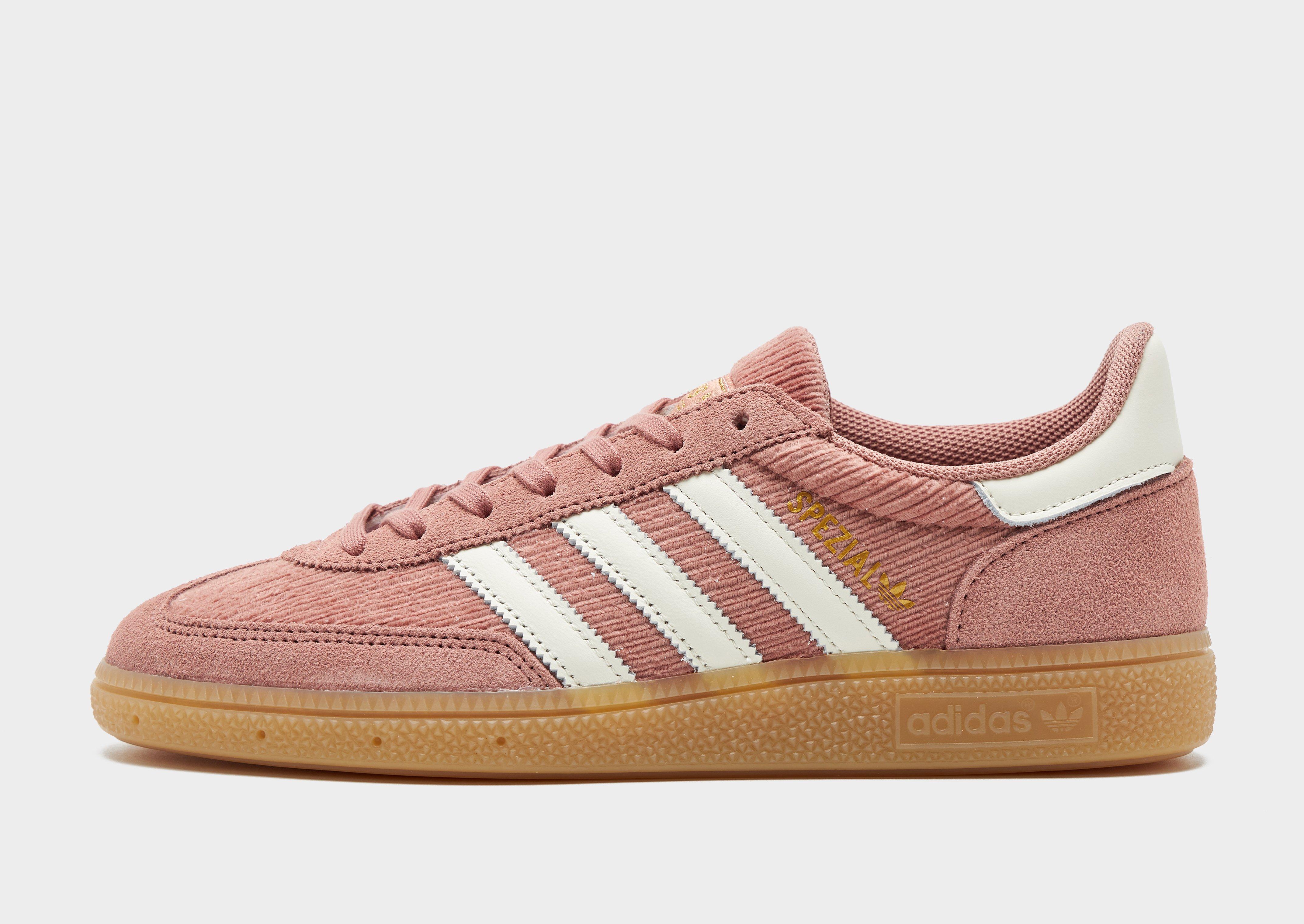 From the terrace to the street, rep a classic look with these women's Handball Spezial trainers from adidas Originals. First introduced in 1979 for the speedy handball courts of Germany, the simple yet stylish silhouette quickly made it a go-to, iconic trainer. Landing in a pink & cream colourway, these kicks have an upper made with cord for durable wear. They feature a lace fastening with a padded ankle collar for locked in fit and sit on a lightweight midsole. With a gum rubber outsole for total traction, they're signed off with the 3-Stripes to the sidewalls.