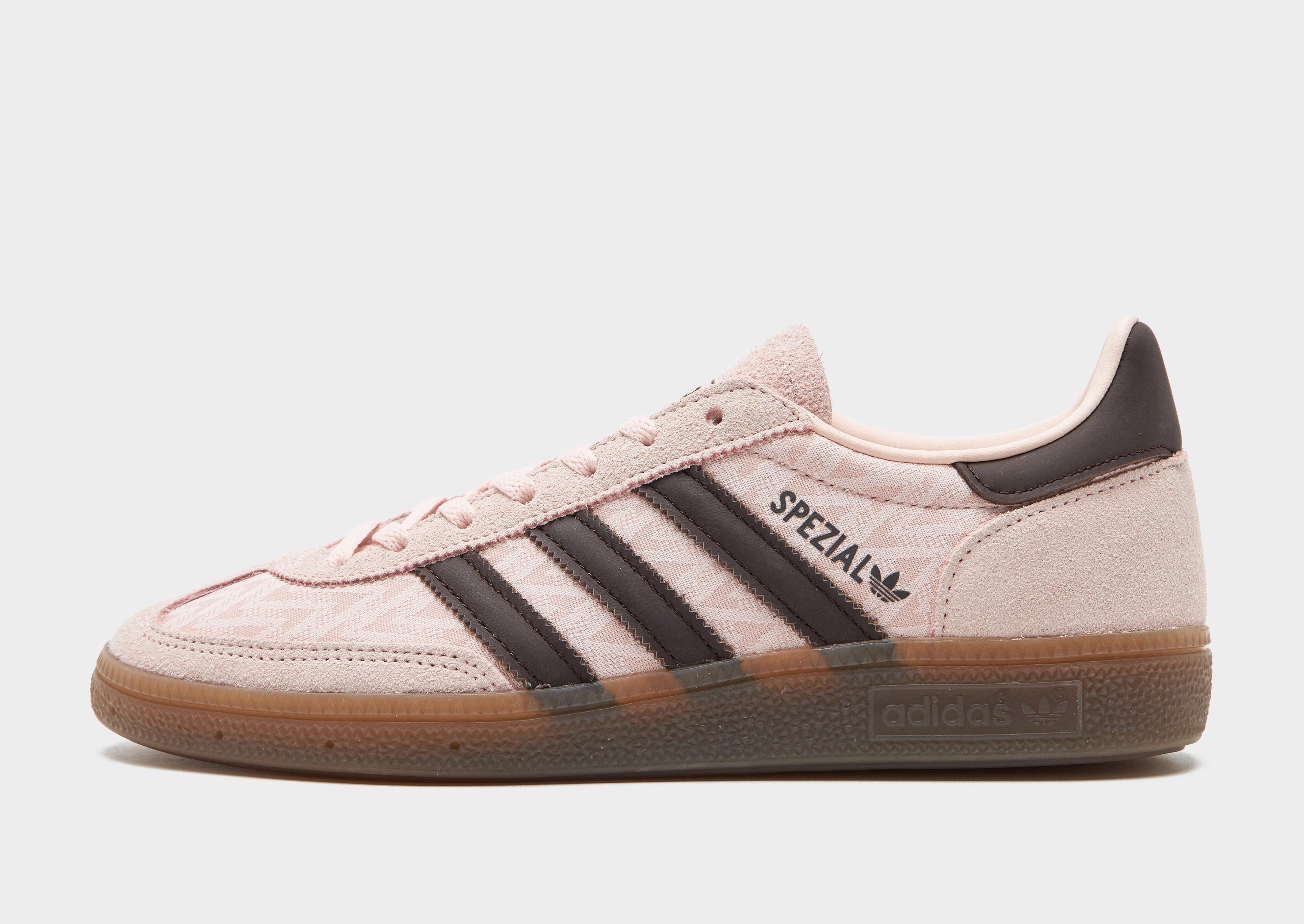 From the terrace to the street, rep a classic look with these women's Handball Spezial shoes from adidas Originals. First introduced in 1979 for the speedy handball courts of Germany, the simple yet stylish silhouette quickly made it a go-to, iconic trainer. Landing in a Pink colourway with Brown details, these sneakers have an upper made with suede and nylon for durable wear. They feature a lace fastening with a padded ankle collar for a locked-in fit and sit on a lightweight midsole. With a gum rubber outsole for total traction, they're signed off with signature Adi 3-Stripes to the sidewalls. Style Code: IH1499
