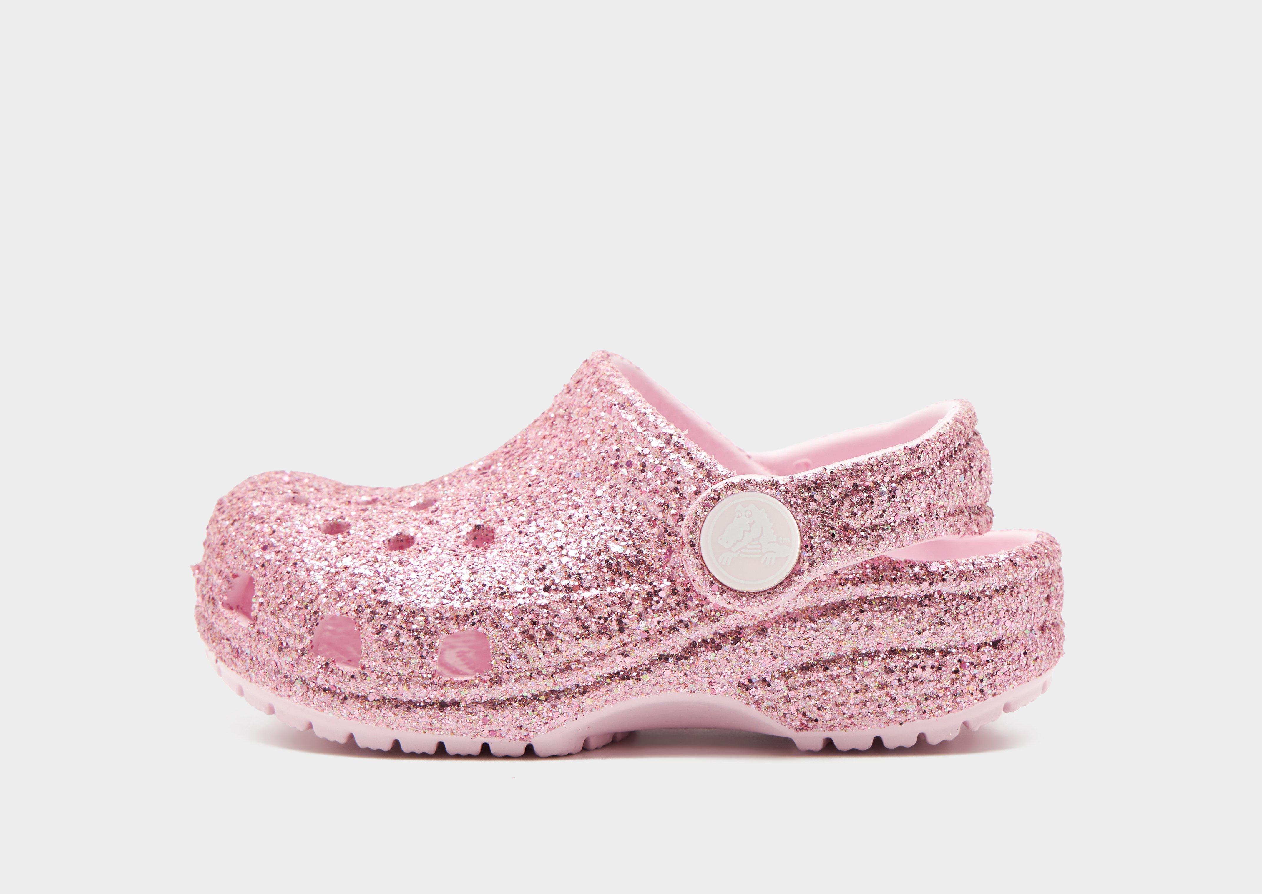 Add an iconic look to your footwear rotation with these infant's Classic Clogs from Crocs. In a Glitter Pink colourway, these clogs have a lightweight Croslite upper that has ventilation ports for breathability. They feature a soft footbed that offers responsive cushioning with every step, while the outsole keeps you gripped to the surface. Comfortable, simple, these clogs are easy to wear - just slip on and get going! Wear them around the house, to the shops, and pull the heel strap down to lock in. Style Code: 211940-6ZW