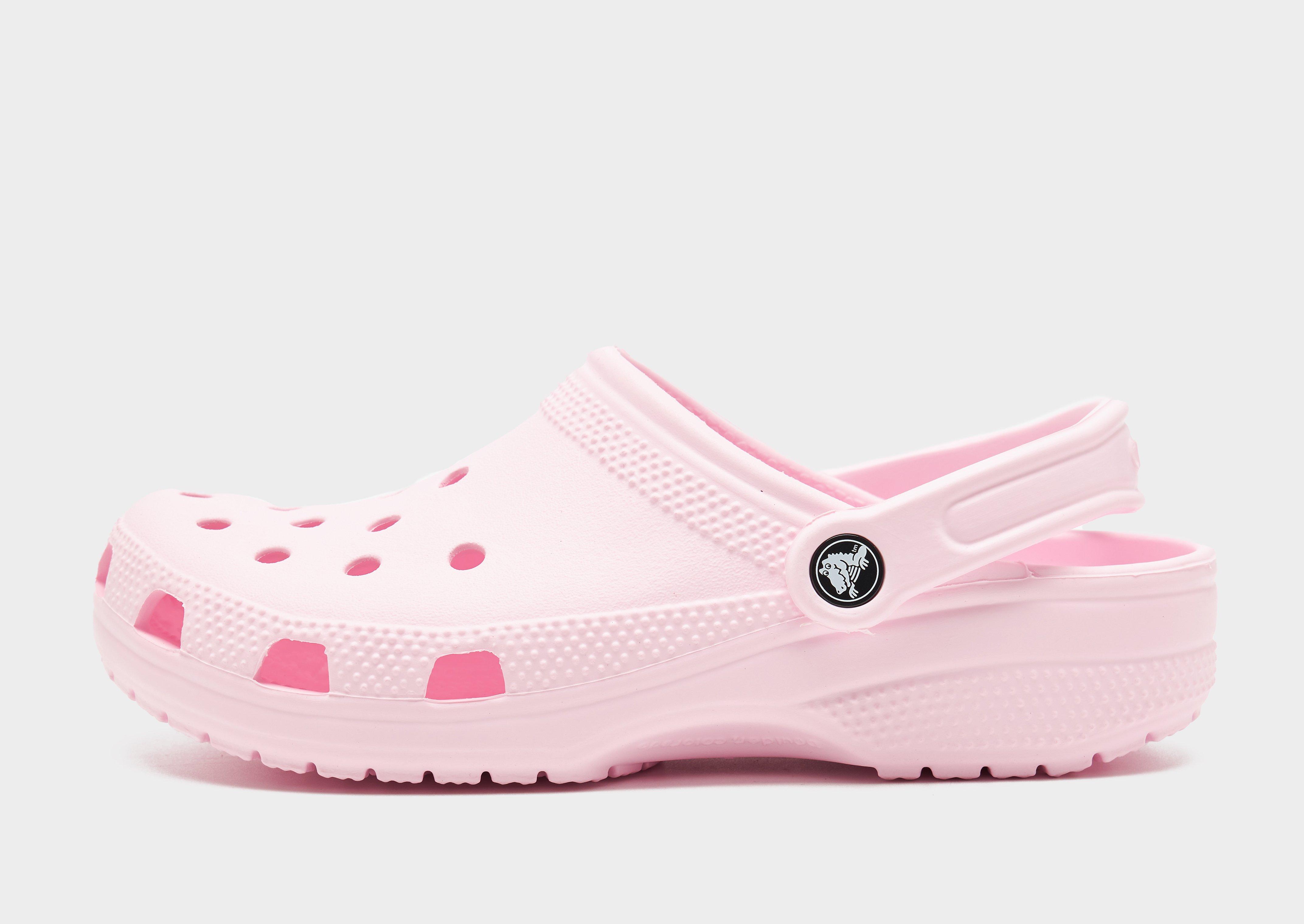 Add an iconic look to your footwear rotation with these women's Classic Clogs from Crocs. In a Light Pink colourway, these clogs have a lightweight Croslite upper that has ventilation ports for breathability. They feature a soft footbed that offers responsive cushioning with every step, while the outsole keeps you gripped to the surface. Comfortable, simple, these clogs are easy to wear - just slip on and get going! Wear them around the house, to the shops, and pull the heel strap down to lock in. Style Code: 10001-6ZWW