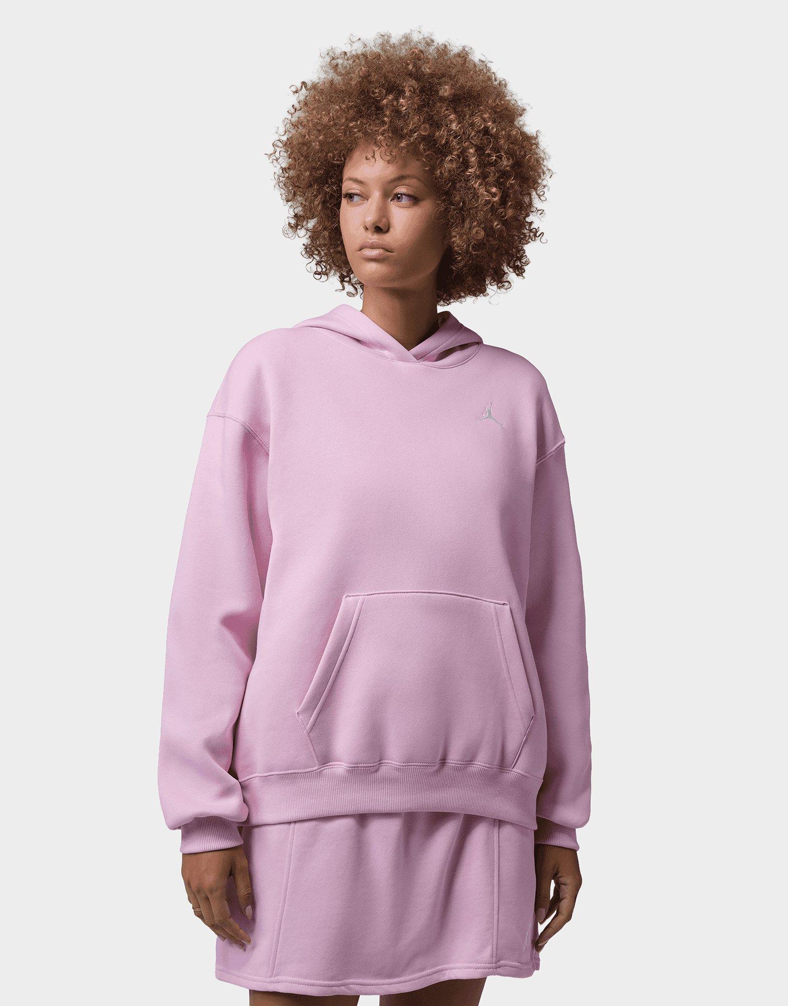 Represent the borough in the Women's Jordan Brooklyn Brushback Fleece Overhead Hoodie in light pink - a premium women's hoodie that brings Jordan Brand's Brooklyn-inspired aesthetic to life in a soft, wearable silhouette. The brushback fleece construction delivers warmth and comfort, while the relaxed overhead fit and bold Jordan Brooklyn branding give this women's Jordan hoodie a genuine sport-culture edge. The light pink and colourway keeps it feminine and versatile, making it a natural match with the Jordan Brooklyn Fleece Pants. Style Code: FV7071-676