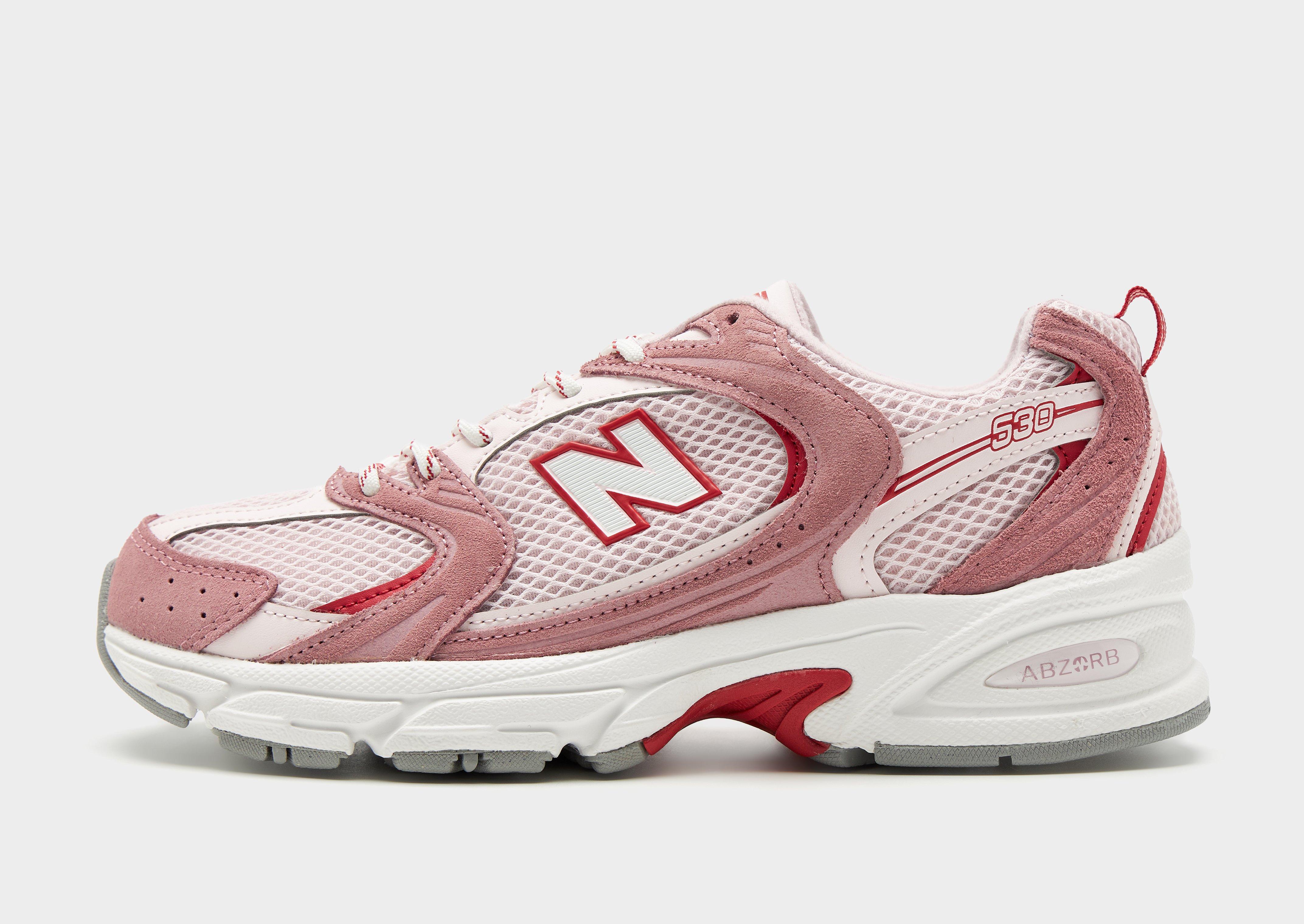 Level up your off-duty rotation with these women's 530 shoes from New Balance. Bringin' an old-school running silhouette to your game, these lightweight sneakers have a Pink upper that features a smooth textile and overlaid suede panels. With a tonal lace-up fastening and plush ankle collar for step-in comfort, they're sat on a flared midsole for everyday cushioning. With a bold rubber outsole that runs up the heel, these kicks are finished off with an oversized 'N' logo to the sidewall and New Balance branding to the tongue. Style Code: U5304GMW
