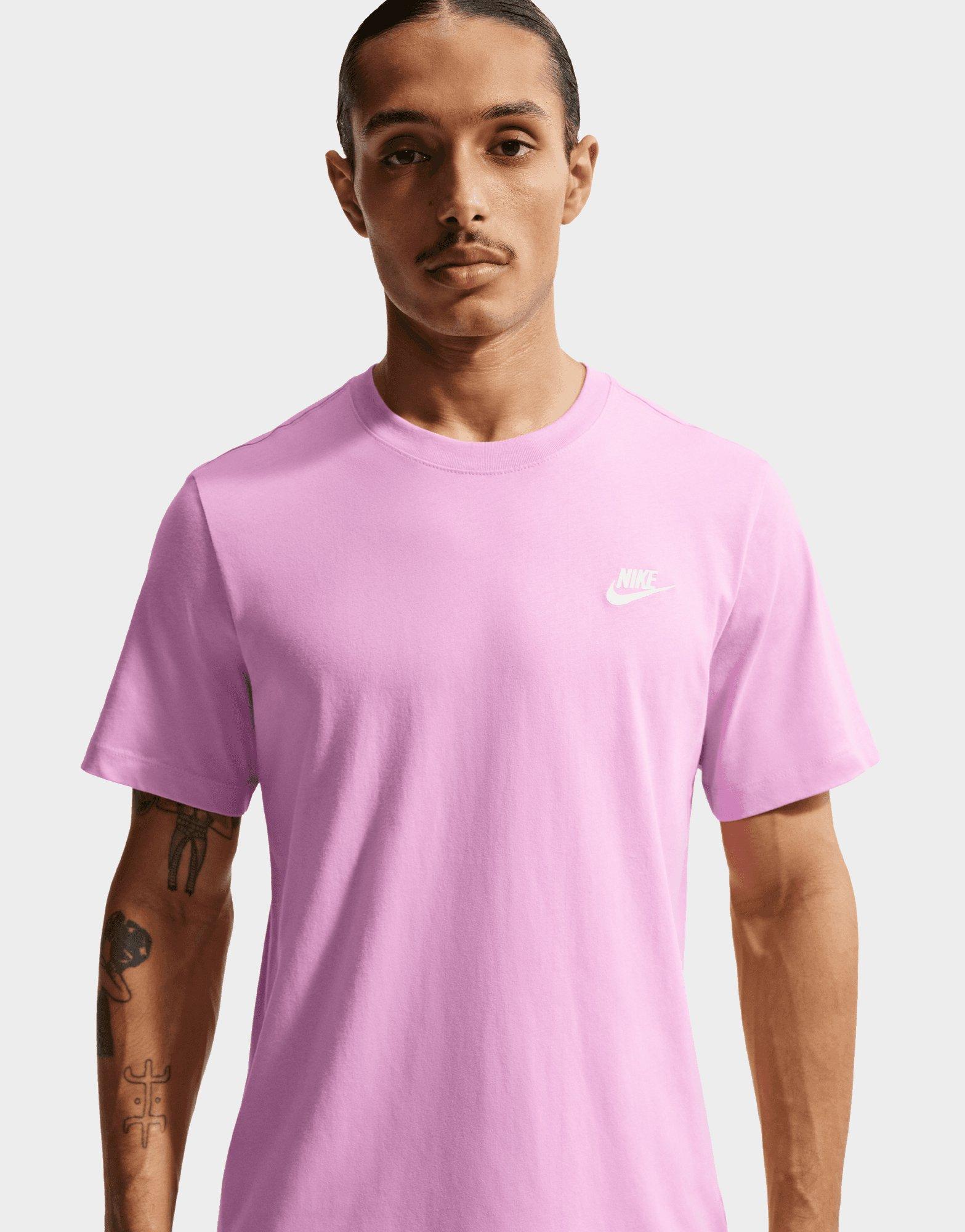 The Nike Sportswear Club T-Shirt is a men's everyday essential that earns its place in any wardrobe through straightforward quality and clean, consistent style. Made from everyday 100% cotton fabric with a classic fit that feels relaxed through the body and hips, it carries an embroidered Futura logo on the chest for a signature Nike look. The soft pink colourway with white detailing makes this a fresh seasonal option that pairs naturally with joggers, shorts or denim for a low-effort, pulled-together look. Soft, lightweight and machine washable, this is the tee that gets worn week after week.