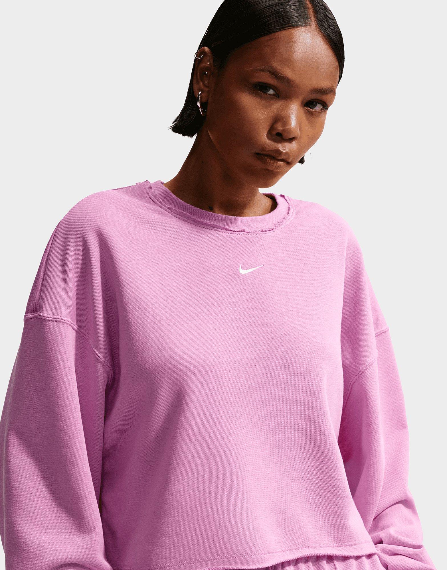 Stay relaxed in this women's Nike Oversized Crew Sweatshirt. Designed with an oversized fit and long sleeves, it features a pink colourway with white accents for contemporary casual style. The soft knit construction delivers comfortable, breathable wear for everyday styling. Perfect for layering or wearing solo, this crew combines Nike quality with laid-back, fashion-forward design. Style Code: IF0228-503