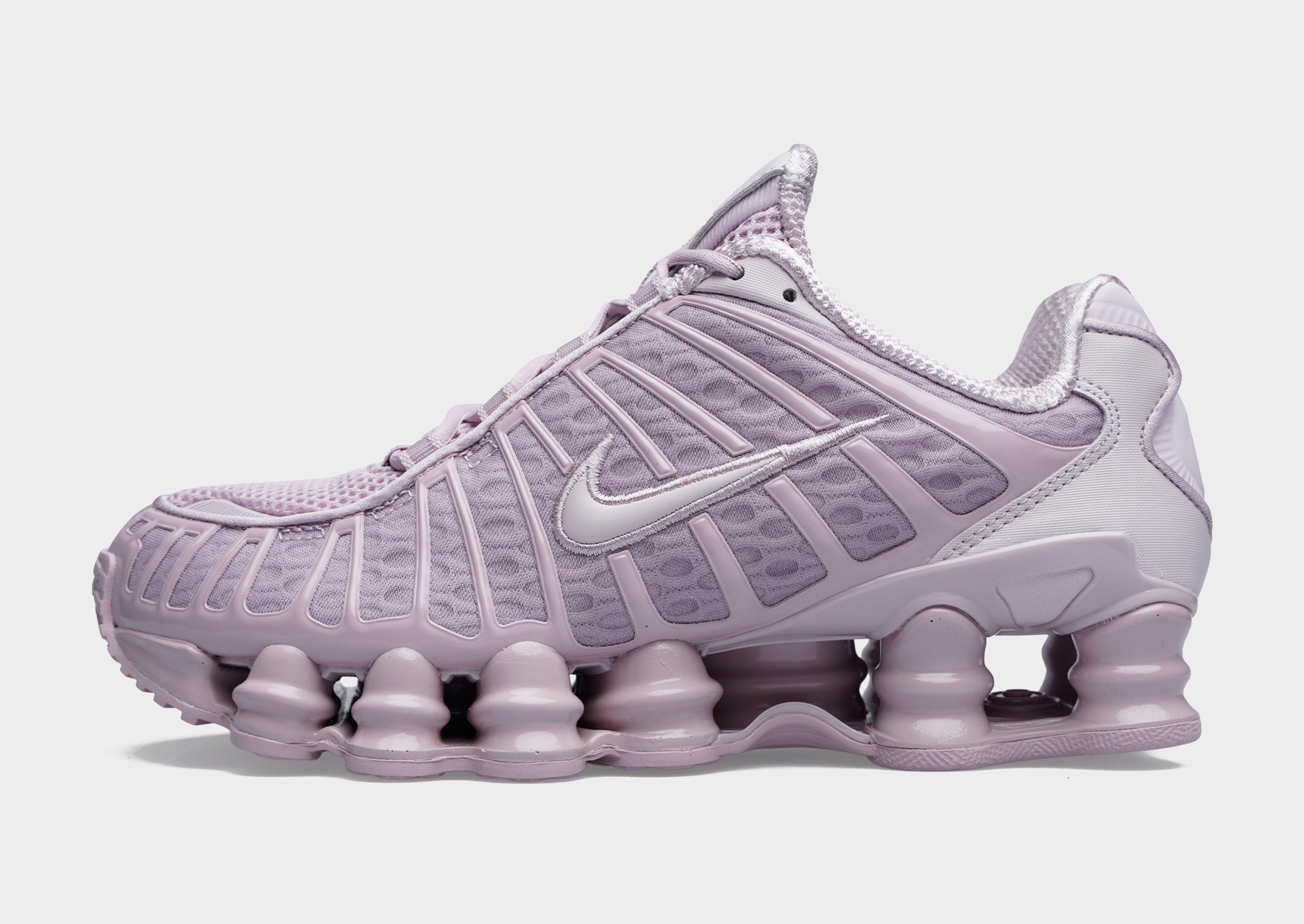 Retro but futuristic, these women's Shox TL sneakers from Nike bring back the 2003 icon in its OG form. In a Particle Rose Pink colourway with Metallic Silver details, these statement shoes are built with a breathable mesh upper that features glossy TPU overlays and a tonal lace up fastening for a locked-in fit. Nike's iconic Shox tech sits underfoot, with a full-length midsole of springy Shox columns for a super comfy feel. With a grippy rubber sole, these trainers are finished with Shox branding to the tongue and the signature Swoosh logo embroidered to the sidewalls. Style Code: AR3566-601