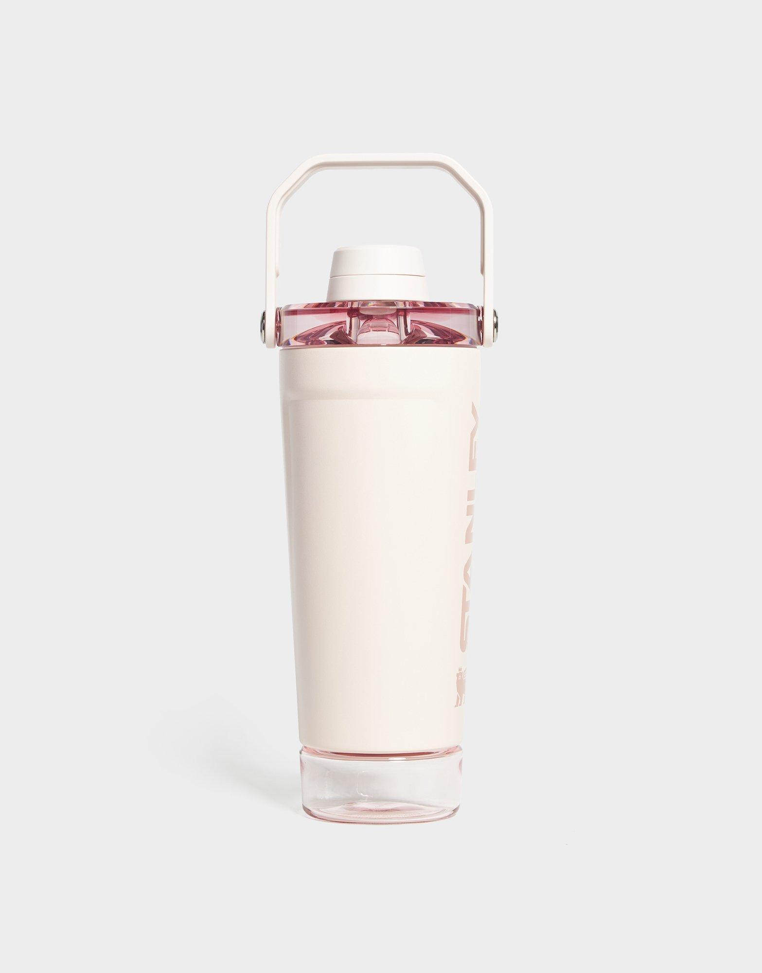 Keep yourself hydrated with The Vitalize Shaker water bottle from Stanley. In a Rose Quartz colourway, this durable, stainless steel bottle is perfect for your protein shakes, infused water, and everything in between. It keeps your drink cold for hours with its double-wall vacuum insulation. The inside is stamped with measurement lines and includes a removable strainer. The leakproof lid features a fast flow drink spout with an easy to remove cover that clips on. The handle allows for easy carrying on-the-go, and the base fits into most car cup holders. Capacity: / Style Code: 10-13007-0149
