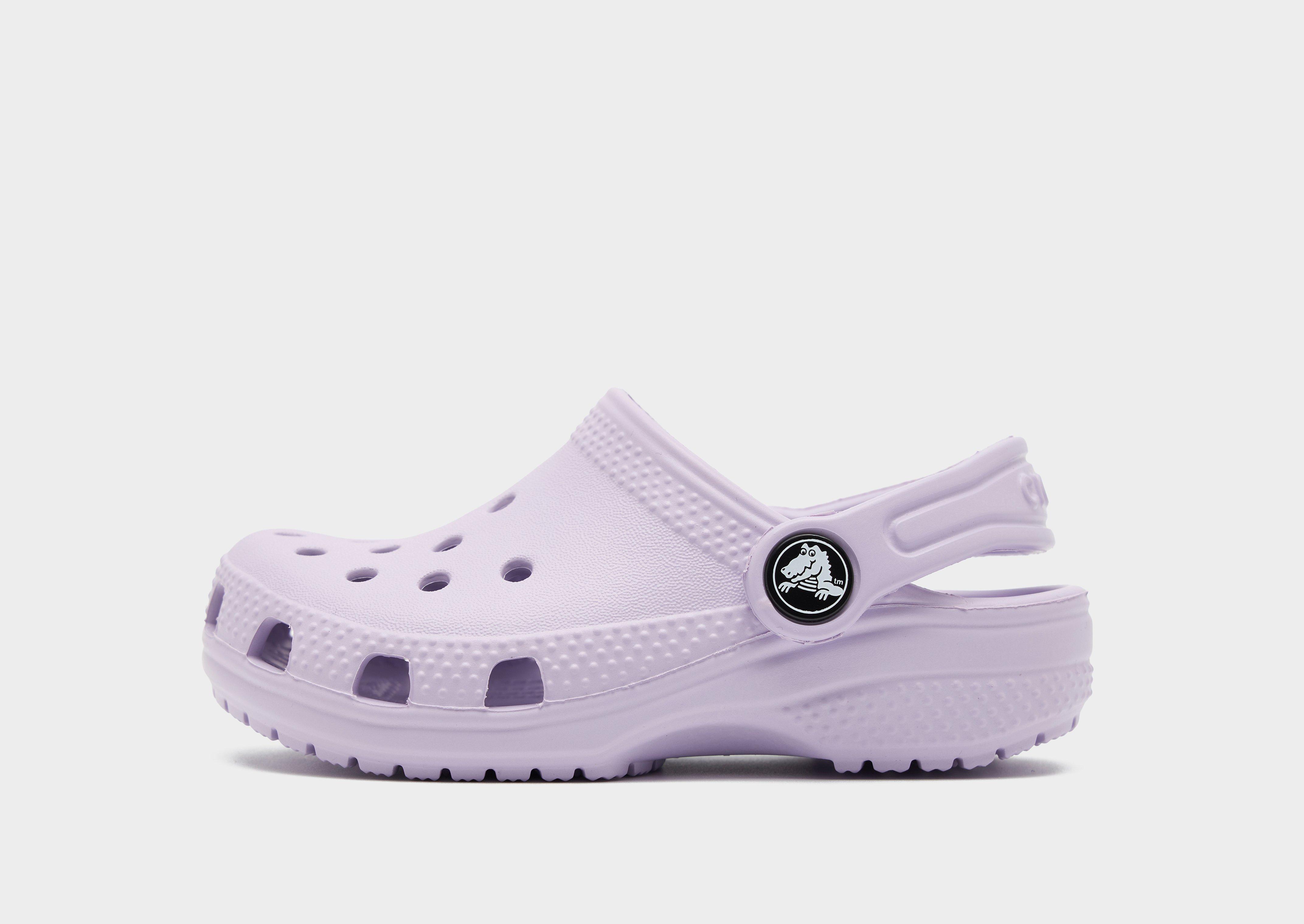 Make sure their chill day style is on point with these infants' Classic Clog sandals from Crocs. In a Lavender colourway, these mini clogs are made from the brand's iconic Croslite foam, featuring breathable port holes to the upper and toes for ventilation. They feature a turbo heel strap to secure 'em in, while the cushioned footbed is contoured with subtle textured grip for locked-in feel. With traction in the outsole, these sandals are finished off with a contrasting logo to the side.