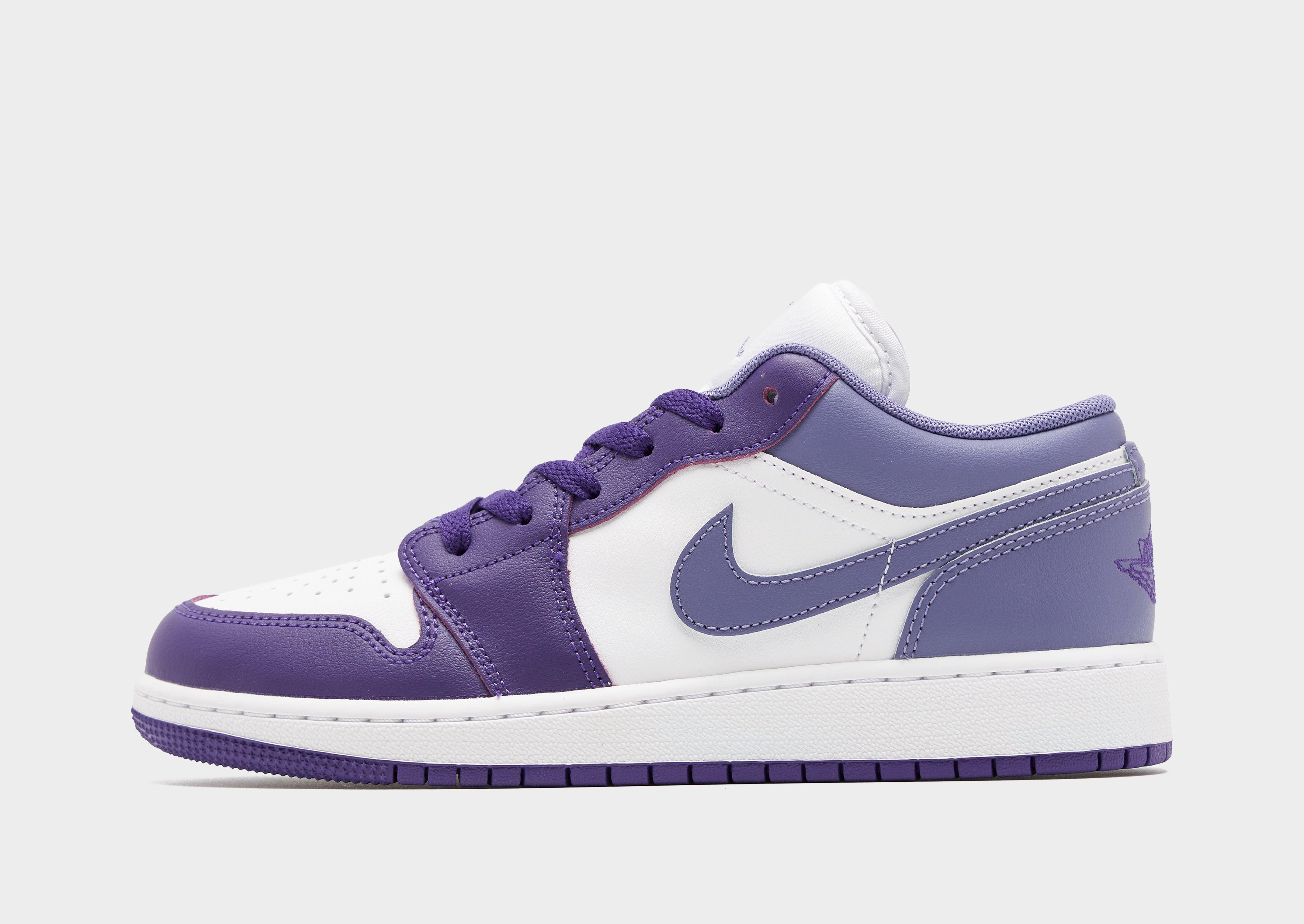 Keep your rotation iconic with the epitome of sneaker culture: the Air Jordan 1 Low. Born from the collaboration between Nike and basketball legend Michael Jordan in 1985, the AJ1 changed the game forever, shattering conventions with bold colours and silhouettes. In a Purple colourway with White details, these low-top shoes are crafted from a leather, synthetic leather and textile blend across the upper for support. Underfoot, the foam midsole combines with Nike Air cushioning for lightweight comfort, while the durable rubber outsole has pivot circles for retro-inspired traction. With a padded ankle collar and perforations on the toe, these kicks are finished off with the Swoosh and Air Wings logo to the sidewalls and the iconic Jumpman to the tongue. Decades later, the AJ1 remains an icon of style and athleticism, transcending generations with its timeless design and legendary status. Style Code: 553560-551