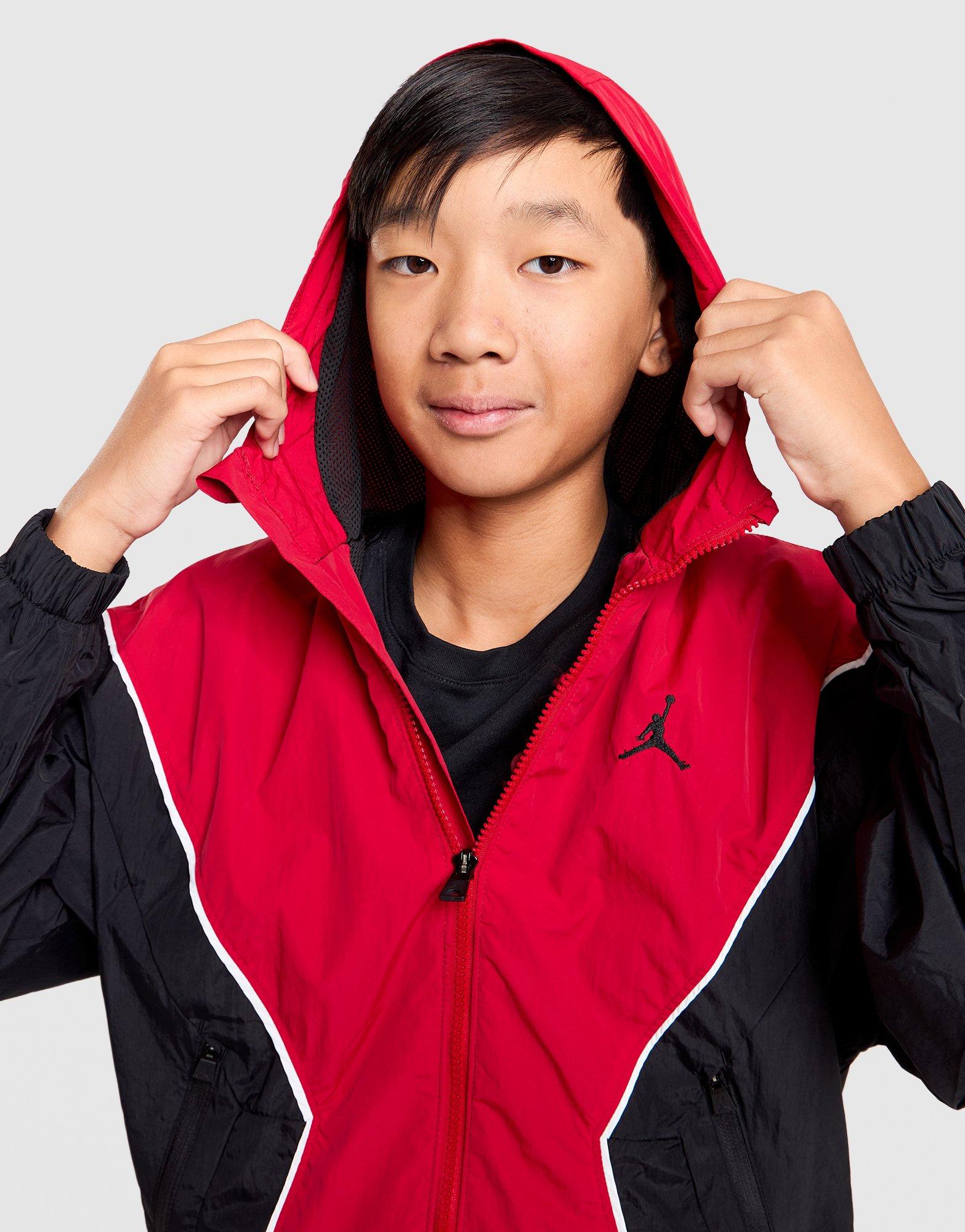 Keep him protected with this junior's Jordan Full-Zip Windbreaker Jacket. Featuring a standard fit and full-zip closure, it showcases red with black and white accents for bold weather protection. The lightweight windbreaker construction offers coverage from wind and light rain. Perfect for active kids who need versatile outerwear, this jacket combines Jordan quality with eye-catching colour-blocked styling. Style Code: 95D689-H24
