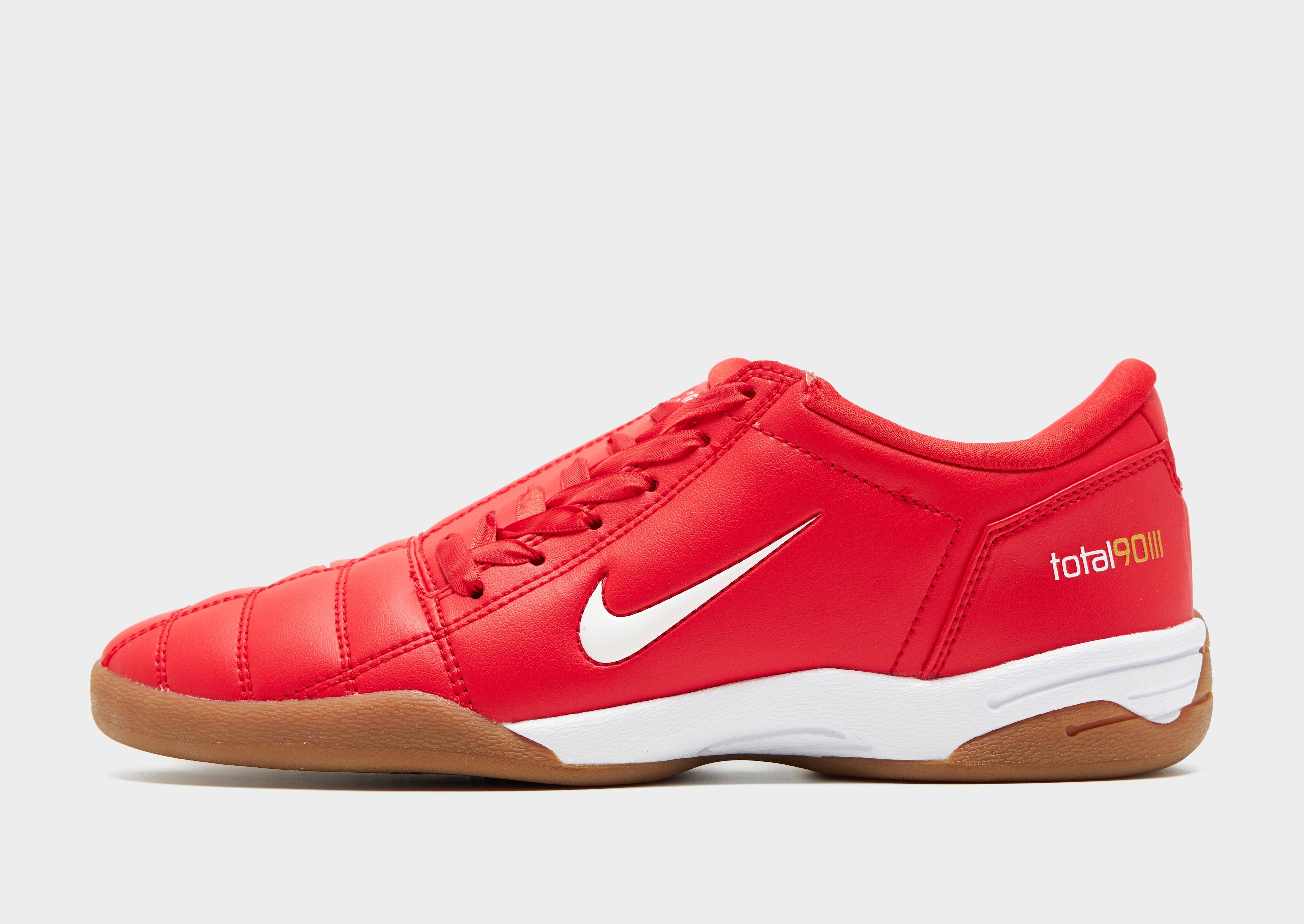 Bring a noughties soccer vibe to your step with these women's Total 90 sneakers from Nike. In a Red and White colourway, these sneaks are crafted from smooth and durable synthetic leather in the legendary quilted style. They feature a lace fastening to lock you in, with a padded collar for support. Underfoot, they sit on a grippy rubber outsole for firm traction and are finished up with signature Swoosh logos and the iconic T90 logo. Style Code: IO2387-600