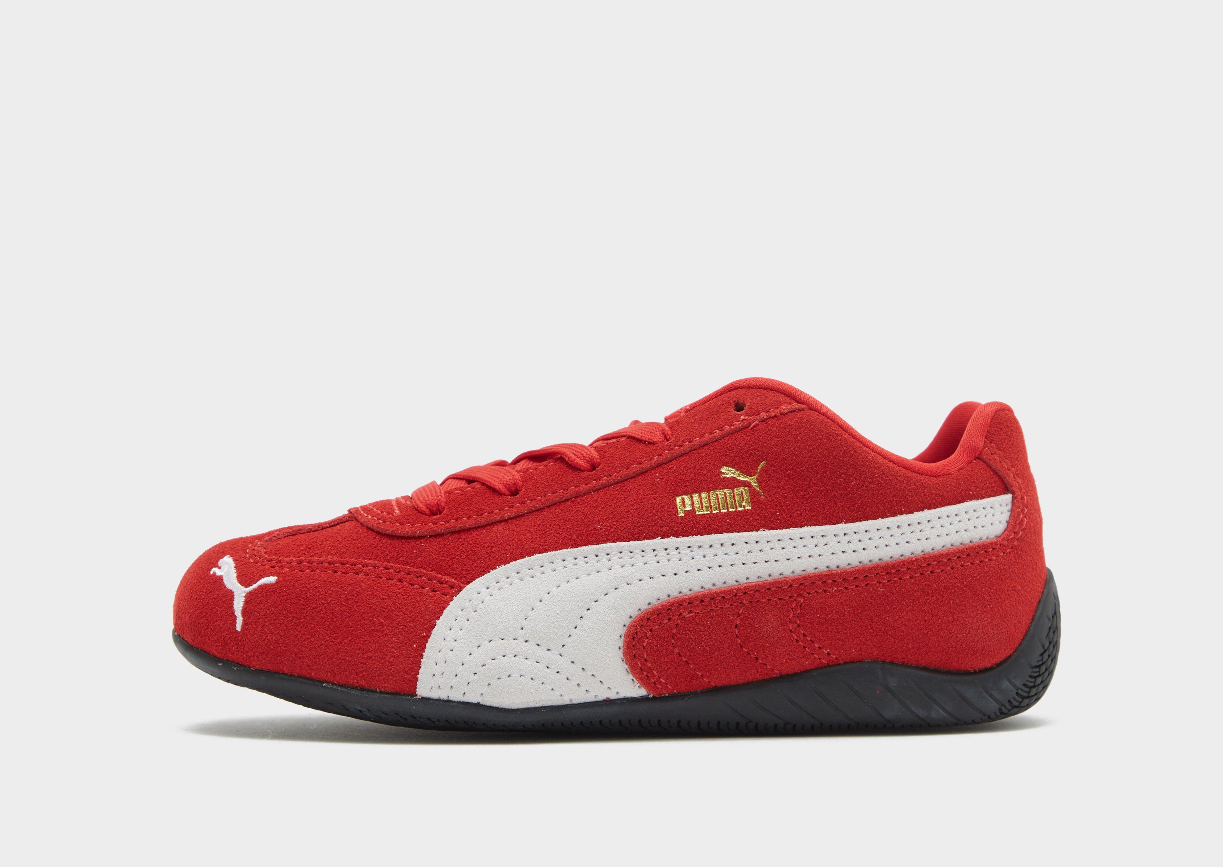 Add some racing heritage to their rotation with these Speedcat OG trainers from PUMA. In a Red colourway with White accents, these low-profile kicks have a soft leather upper for lasting wear. They feature a lace fastening for a secure fit, IMEVA material in the midsole to keep 'em light, and a grippy rubber outsole for total traction on the streets. With bold racing lines throughout, they're signed off with an embroidered PUMA Cat logo on the T-toe, Gold wordmark branding, and a suede Formstrip to the sidewalls. Style Code: 40169902