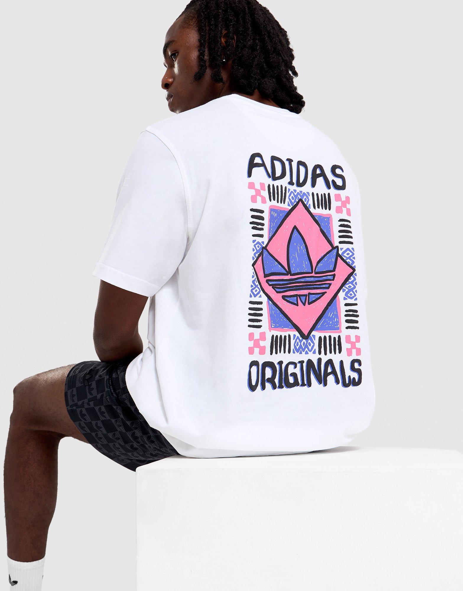 This Adidas white crewneck tee is the fresh essential that works harder than you'd expect. Made from a breathable cotton-blend fabric, it features short sleeves, a ribbed crewneck, and bold 80s graphic print on the back that gives it that signature sportswear edge. The standard fit delivers that perfect middle ground - relaxed enough for all-day comfort but clean enough to look intentional when you're out. With eye-catching logo details, it brings just enough three-stripes presence to elevate any outfit without trying too hard. It's the versatile staple that pairs with everything from joggers to jeans, proving that sometimes the simplest pieces make the biggest impact. Style Code: KS8486