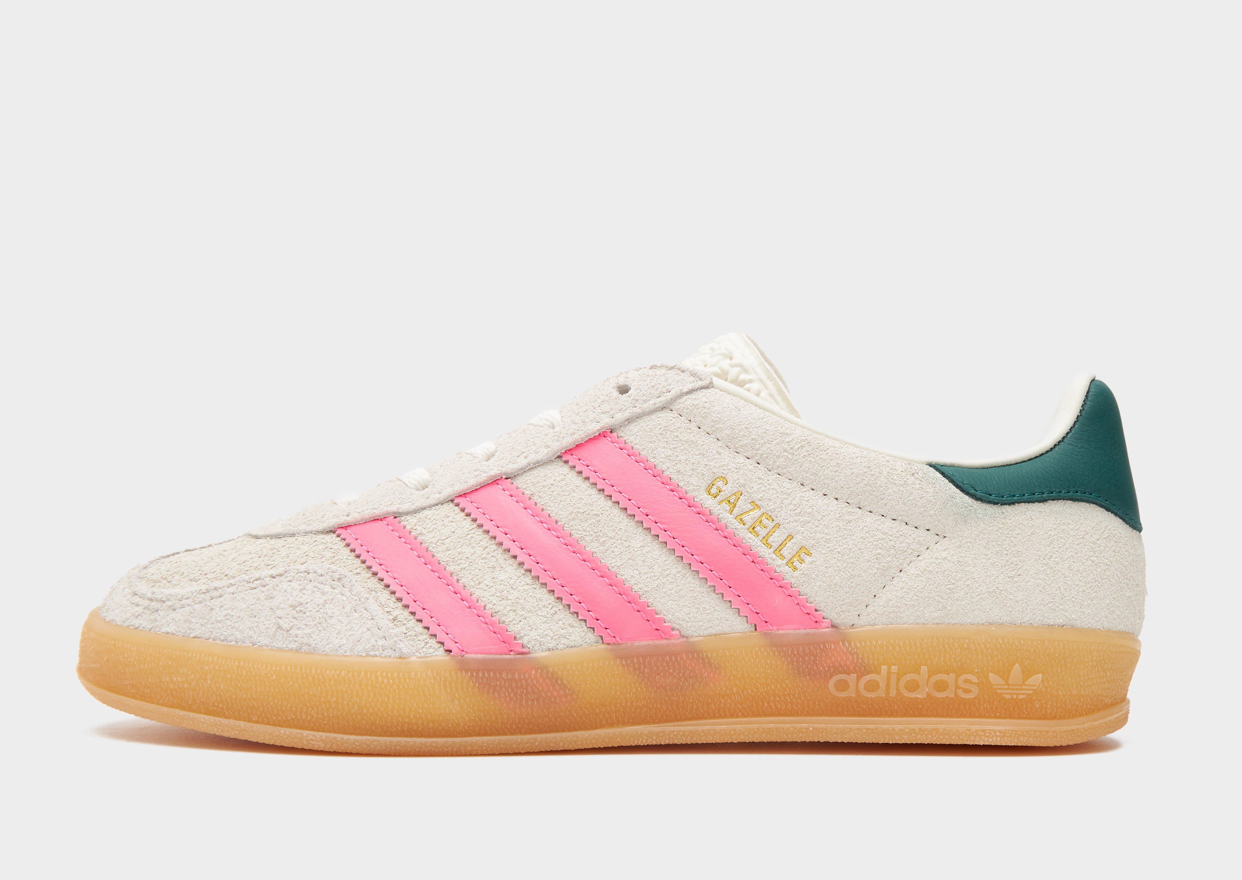 Add a retro vibe to your sneaker rotation with these women's Gazelle Indoor shoes from adidas Originals. In an Off White colourway with Pink details, these JD-exclusive, low-cut shoes have a premium suede upper and padded tongue for a classic look and feel. They're sat above a smooth midsole for lightweight cushioning and a rubber outsole for essential grip. Finished off with signature Adi 3-Stripes, a retro Trefoil label on the tongue and Gazelle branding. Style Code: JQ1096