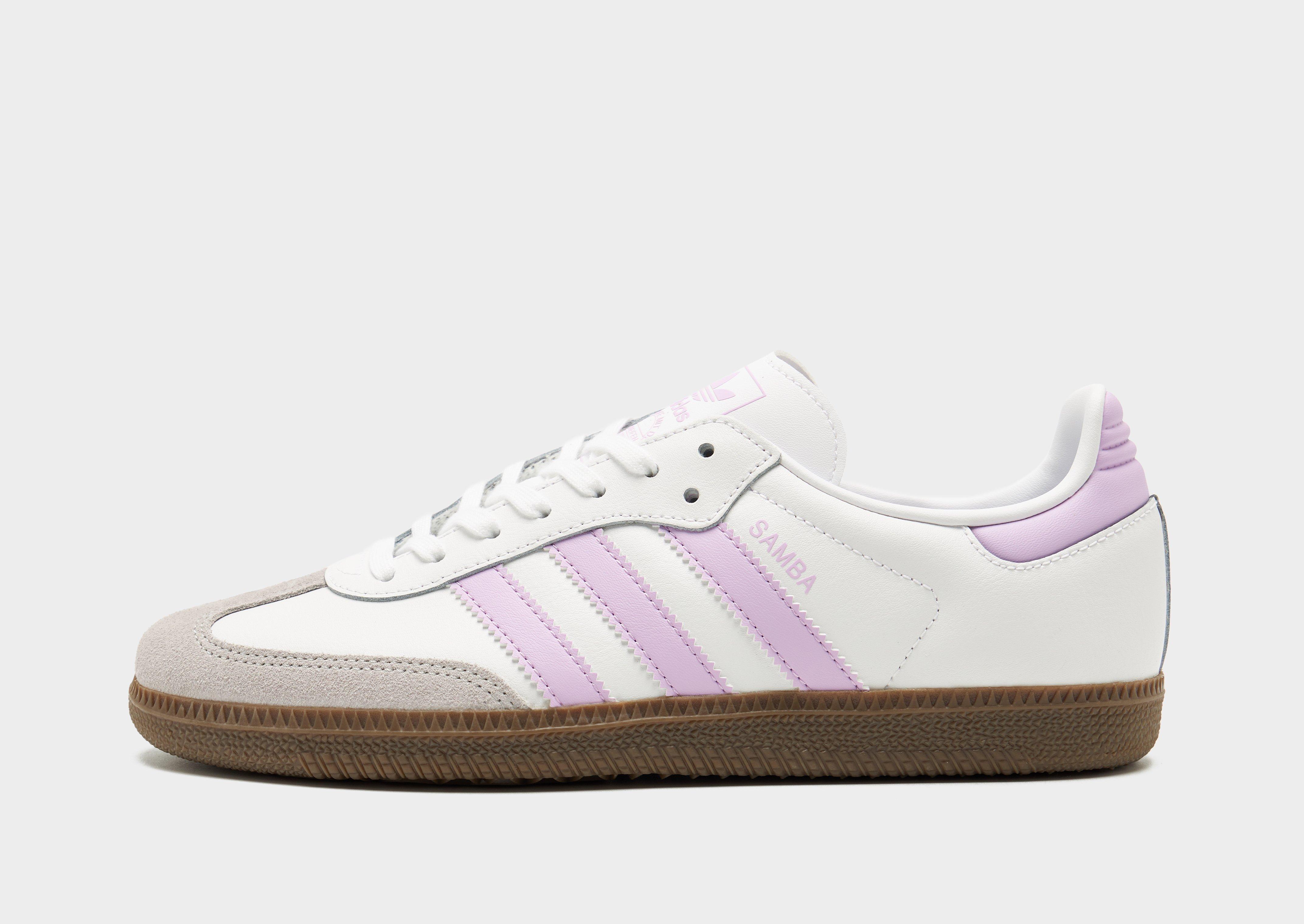 Add a streetwear icon to your footwear rotation with these junior's Samba OG shoes from adidas Originals. Taking cues from the original football-inspired Samba design first introduced in the 1950s, these iconic terrace sneakers let you imagine you're walking in those vintage footsteps. Built with a White leather upper, they feature a suede toe guard and are sat upon a responsive gum midsole. With tonal laces and signature adi 3-stripes to the side in Purple, they're signed off with 'Samba' wording to the side, and iconic Trefoil branding to the tongue. Style Code: JQ2842