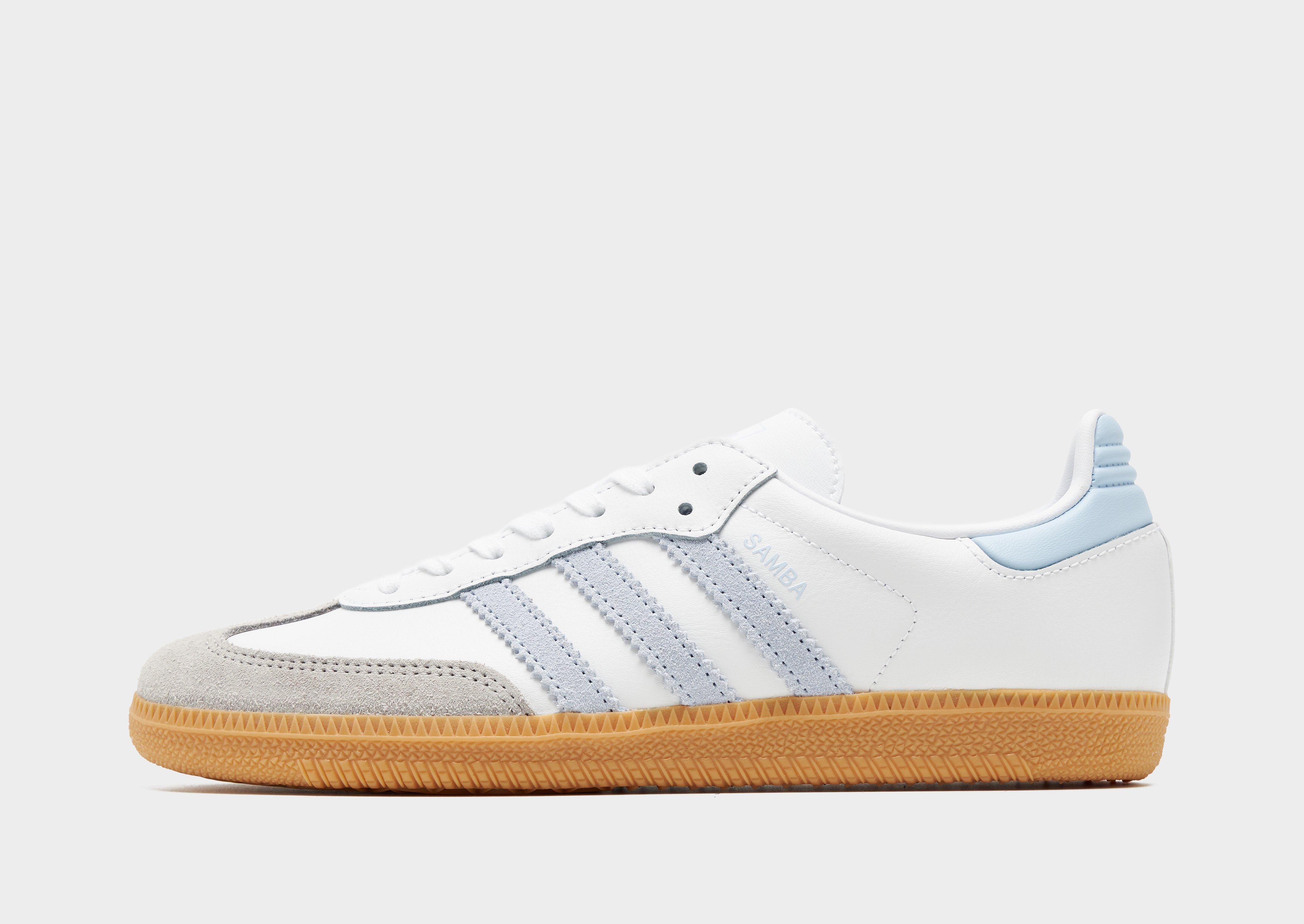 Add a streetwear icon to your footwear rotation with these junior's Samba OG shoes from adidas Originals. Taking cues from the original football-inspired Samba design first introduced in the 1950s, these iconic terrace sneakers let you imagine you're walking in those vintage footsteps. Built with a White leather upper, they feature a suede toe guard and are sat upon a responsive gum midsole. With tonal laces and signature adi 3-stripes to the side in Light Blue, they're signed off with 'Samba' wording to the side, and iconic Trefoil branding to the tongue. Style Code: JQ2019