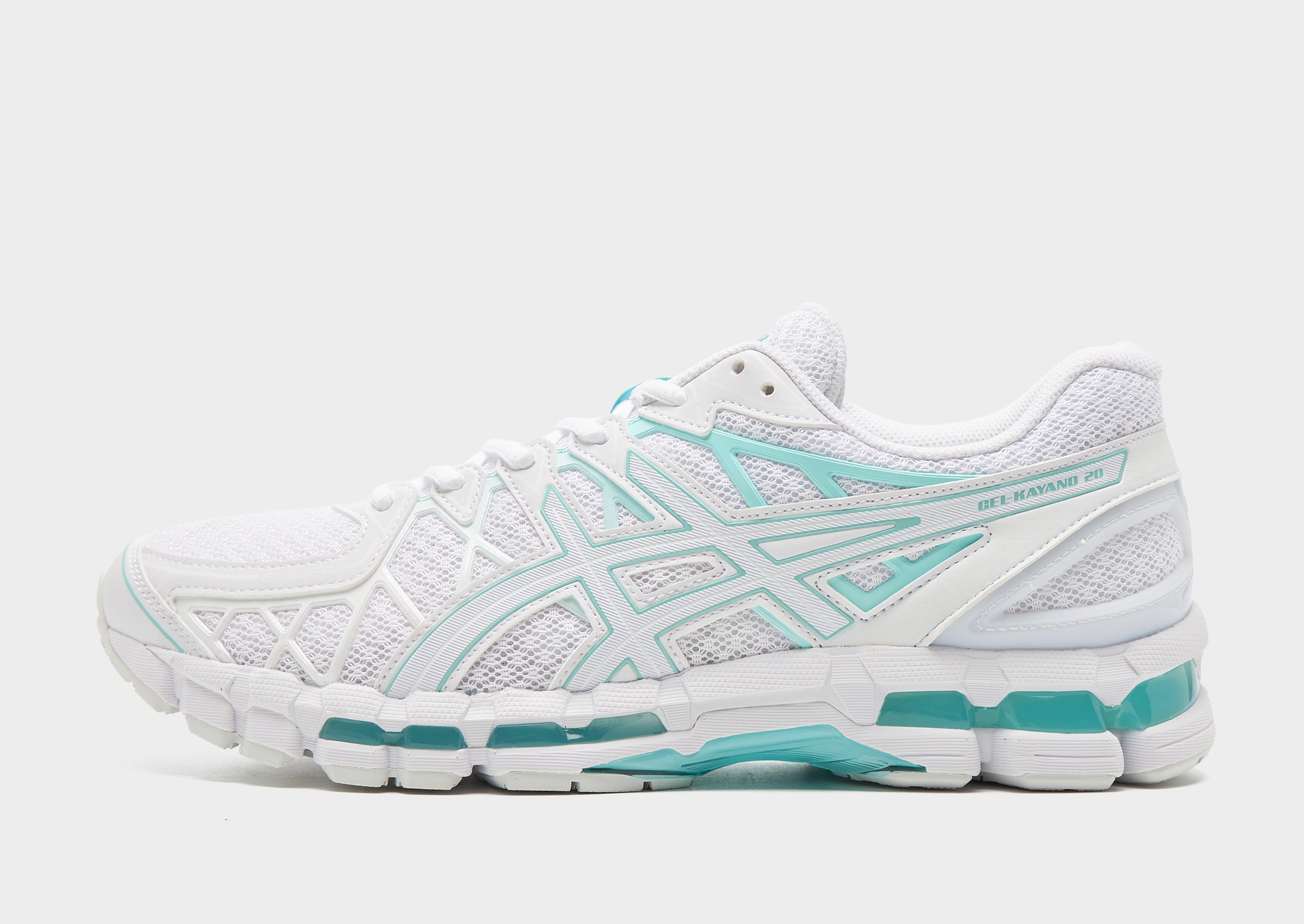Get a 00s-tech style with these women's GEL-KAYANO 20 shoes from ASICS. In a White colourway with Green details, these JD-exclusive low-profile sneakers have a breathable mesh upper with synthetic overlays for a supportive feel. They feature a lace fastening to lock you in, a padded ankle collar for a snug feel and a TRUSSTIC support system. Underfoot is a foam midsole coupled with GEL technology for next-level cushioning and a rubber outsole for traction. Signed off with ASICS branding throughout. Style Code: 1203B149.100W