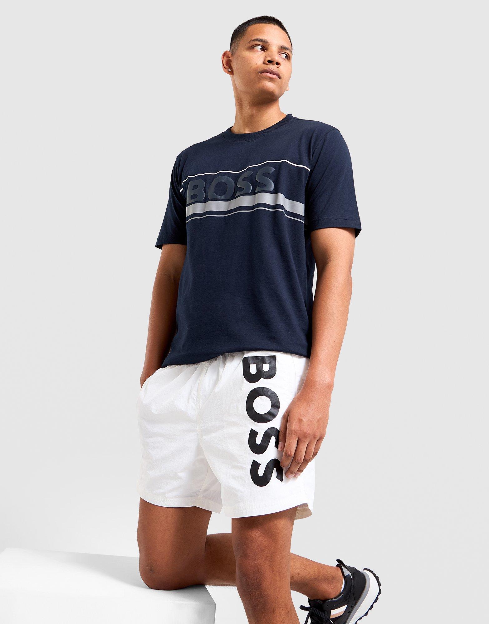 Make waves this season with these men's Boss swim shorts, built for poolside confidence and beachside style. The standard fit offers a comfortable, classic silhouette that flatters without restriction. White colourway with high brand read detailing delivers that premium Boss aesthetic you know and love. Crafted from quick-drying woven fabric, they're designed to keep you comfortable in and out of the water. Elevate your summer wardrobe with luxury sportswear that performs.