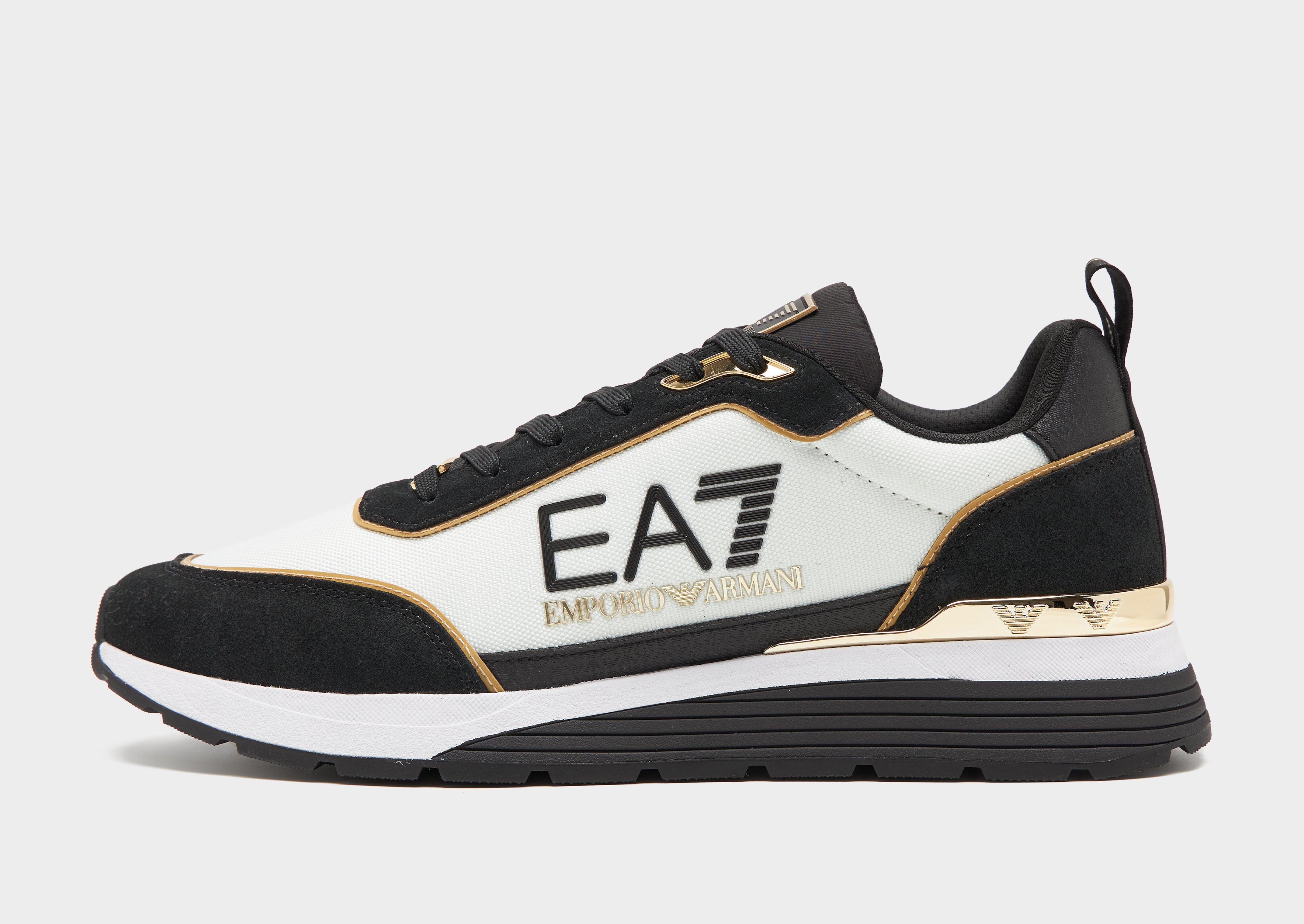 Step into premium Italian sportswear with these men's EA7 B&W Mono trainers, exclusive to JD. Dressed in white with black and gold accents, they bring Emporio Armani sophistication to retro running style. The sleek monochrome design features premium materials and signature EA7 branding throughout. Built with comfortable cushioning and a durable outsole, these kicks deliver all-day wearability with luxury appeal. Perfect for elevating your sneaker rotation with Italian heritage. Style Code: 68223983MZ795