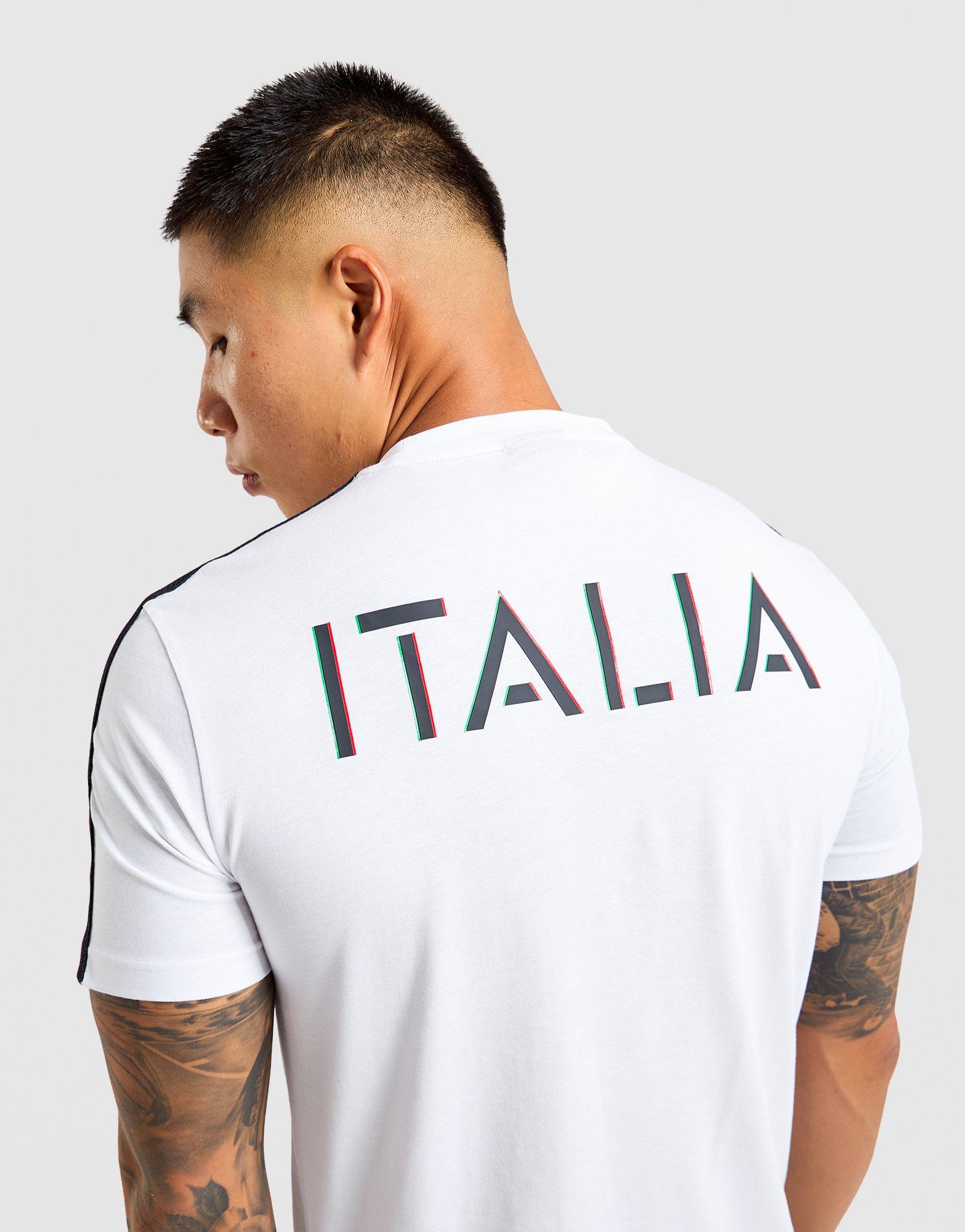 Rep Italian pride with this men's EA7 Tape Italia T-Shirt. Designed with a standard fit and short sleeves, it features white with red and green tape detailing for authentic Italian styling. The high brand read design brings premium Emporio Armani quality to patriotic sportswear. Perfect for match days or casual support, this tee celebrates Italian heritage with sophisticated design. Style Code: 7M1861AF1253U2