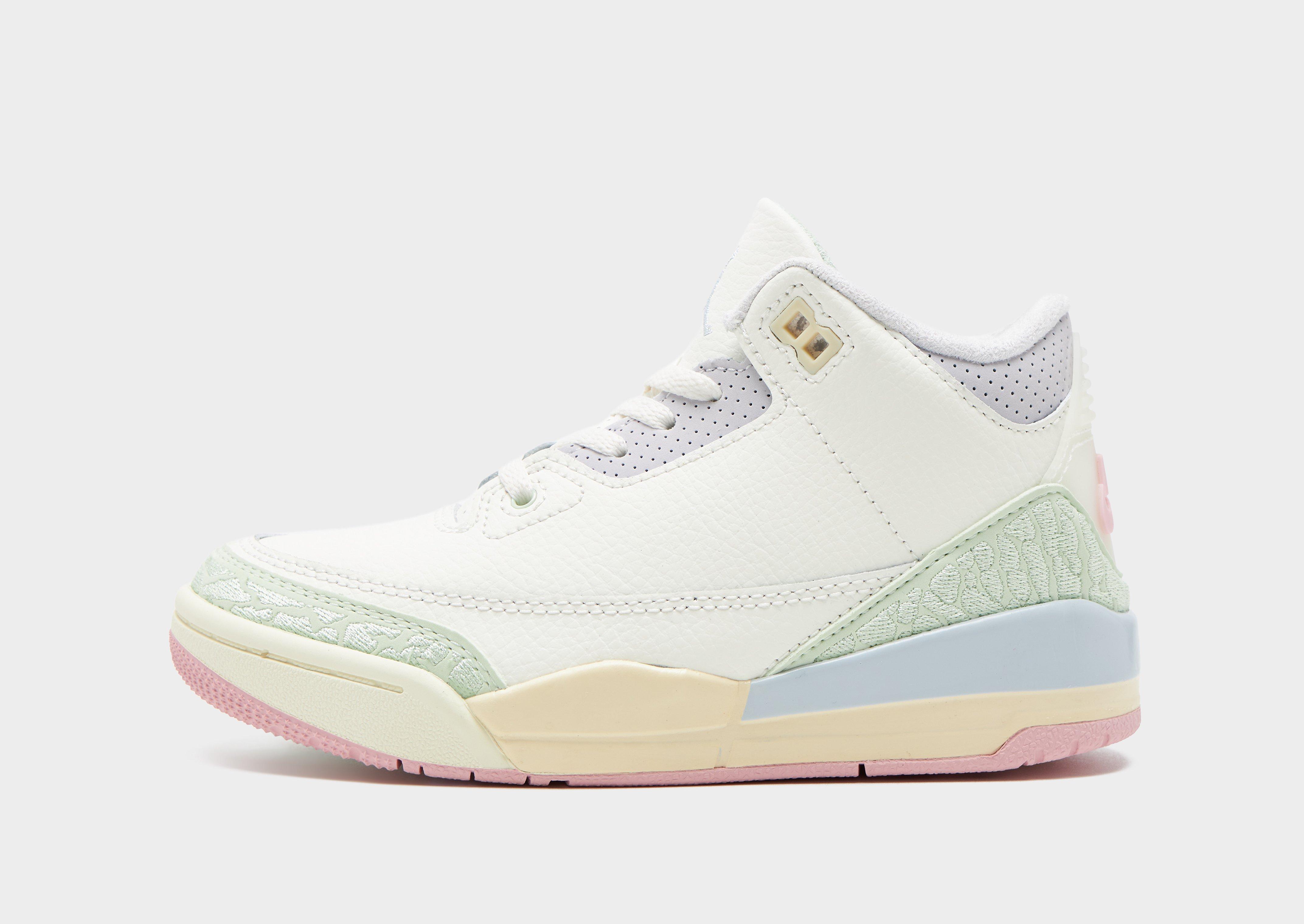 Add a sneaker icon to your sneaker collection with the Air Jordan 3. First introduced in ’88, the AJ3 not only marked the debut of the legendary Jumpman logo, but also introduced the visible Air cushioning and iconic elephant print detailing. The AJ3 remains a symbol of greatness, blending heritage with innovation. Coming in a Sail White colourway with pastel Jade Aura Green