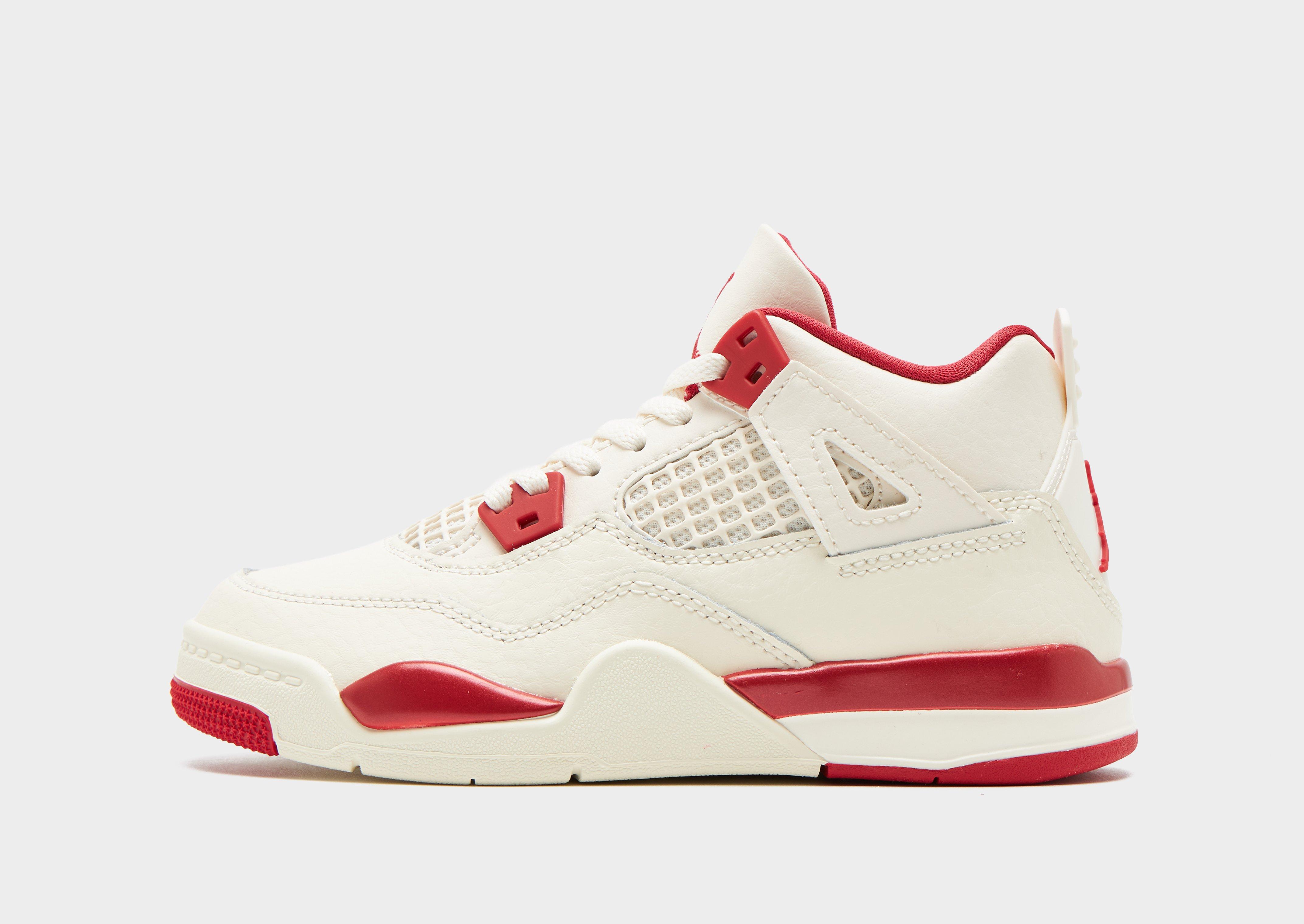 Get them into iconic Jordan style with these children's Air Jordan 4 trainers. Featuring a cream colourway with red accents, they bring legendary basketball heritage to young sneaker fans. The classic AJ4 silhouette with visible Air cushioning delivers comfort and authentic design details. Built with premium materials and signature Jordan branding throughout, these kicks are perfect for kids who want to rep iconic sneaker culture. Finished with the timeless design that's defined streetwear for generations. Style Code: HV4385-108