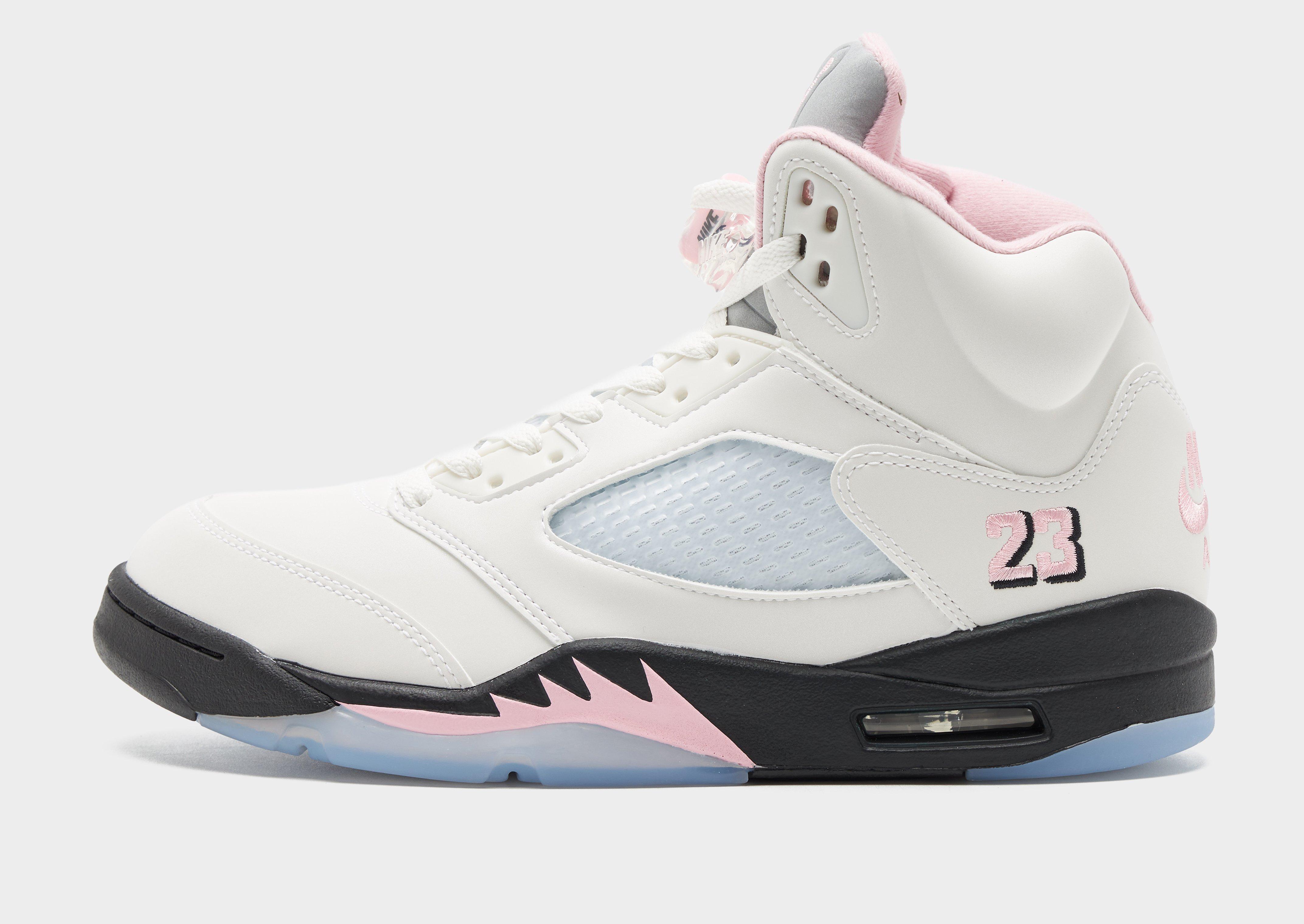 Take your sneaker game to the next level with the Air Jordan 5, inspired by Michael Jordan’s legendary performances on the court. In a White colourway with Medium Soft Pink details, these high-top sneakers have a real and synthetic leather upper, with an ultra-padded collar and tongue for a plush feel. The AJ5 features a tonal lace-up closure with an adjustable toggle for a personalised fit, they're sat on a legendary midsole equipped with Nike Air cushioning in the forefoot and heel for a responsive, lightweight step. With a signature Herringbone outsole that includes flex grooves for natural traction, these premium shoes are finished off with the world-famous Jumpman logo to the tongue and heel. With its bold silhouette and eye-catching colourway with Pink detailss, this sneaker has become a symbol of self-expression and individuality across sneaker culture and streetwear fashion. Style Code: HQ7978-102