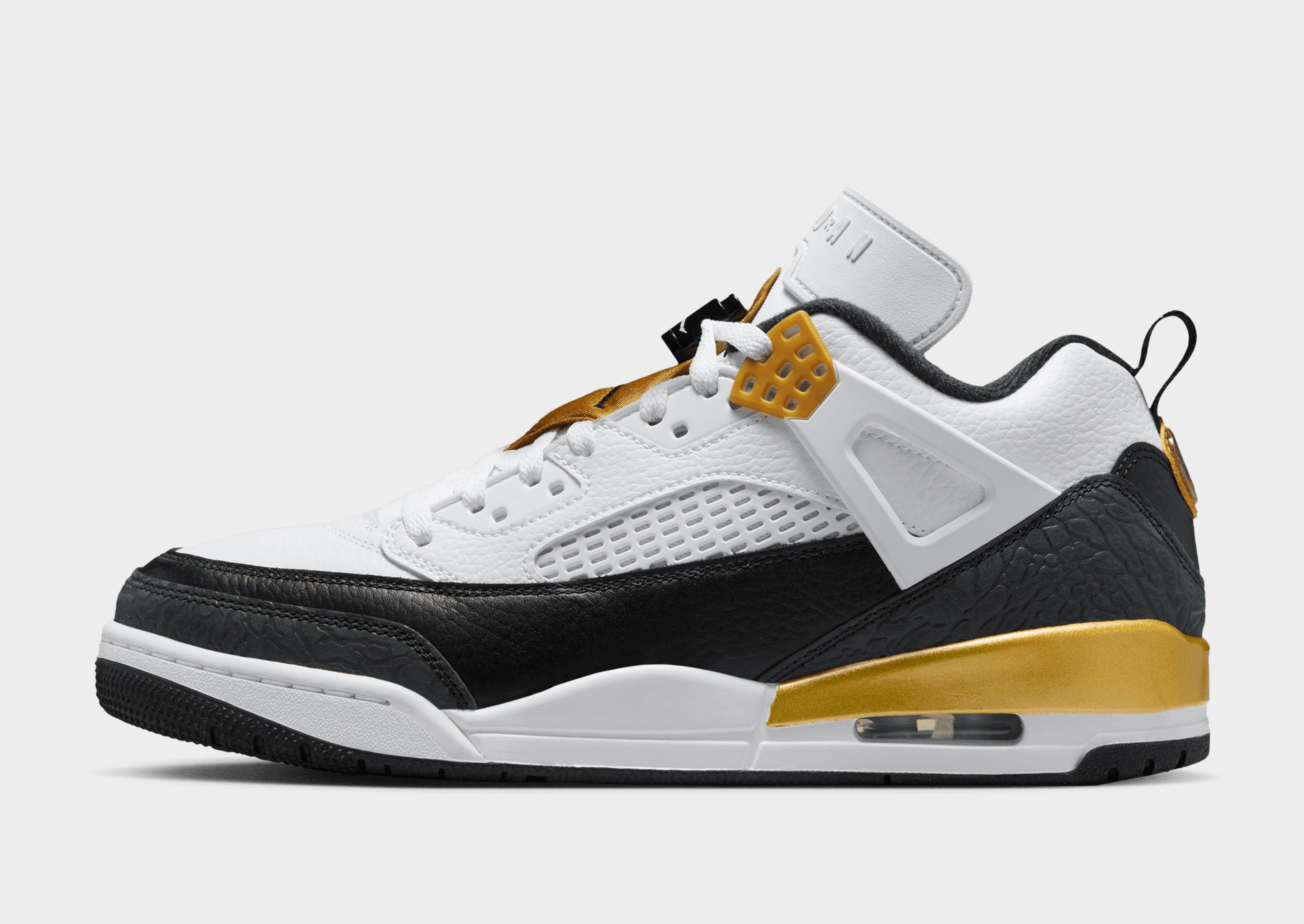 Upgrade your rotation with these men's Spizike Low shoes from Jordan. In a White colourway with Black details, these kicks take elements of five iconic Jordan sneakers and combines them to create a standout silhouette. They have a real and synthetic leather upper, with a tonal lace fastening and a padded collar to lock you in. They sit above a lightweight foam midsole with Nike Air technology underfoot for next-level comfort, while a tough rubber outsole keeps you gripped. Finished with signature Jordan branding throughout. Style Code: FQ1759-108