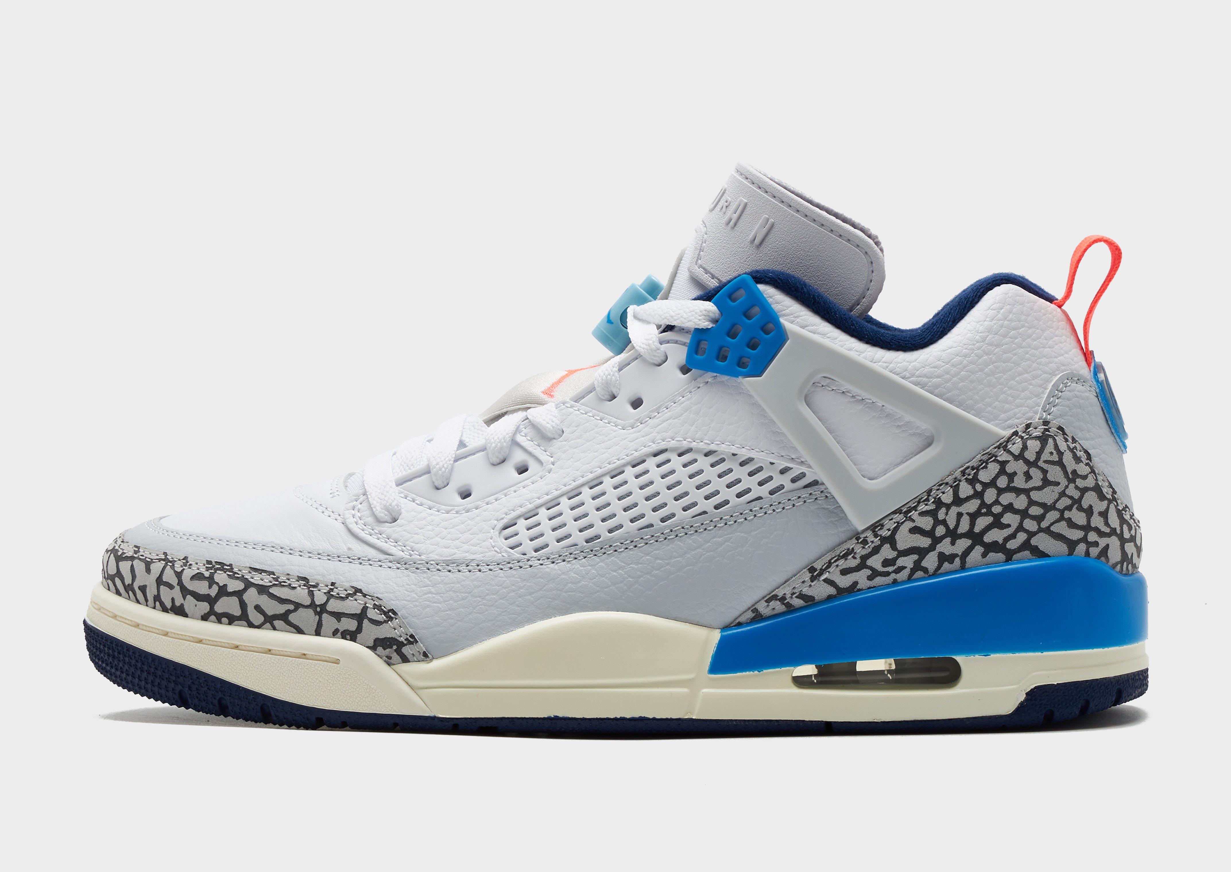 Upgrade your rotation with these men's Spizike Low shoes from Jordan. In a White colourway with Platinum details, these kicks take elements of five iconic Jordan sneakers and combines them to create a standout silhouette. They have a real and synthetic leather upper, with a tonal lace fastening and a padded collar to lock you in. They sit above a lightweight foam midsole with Nike Air technology underfoot for next-level comfort, while a tough rubber outsole keeps you gripped. Finished with signature Jordan branding throughout. Style Code: FQ1759-110