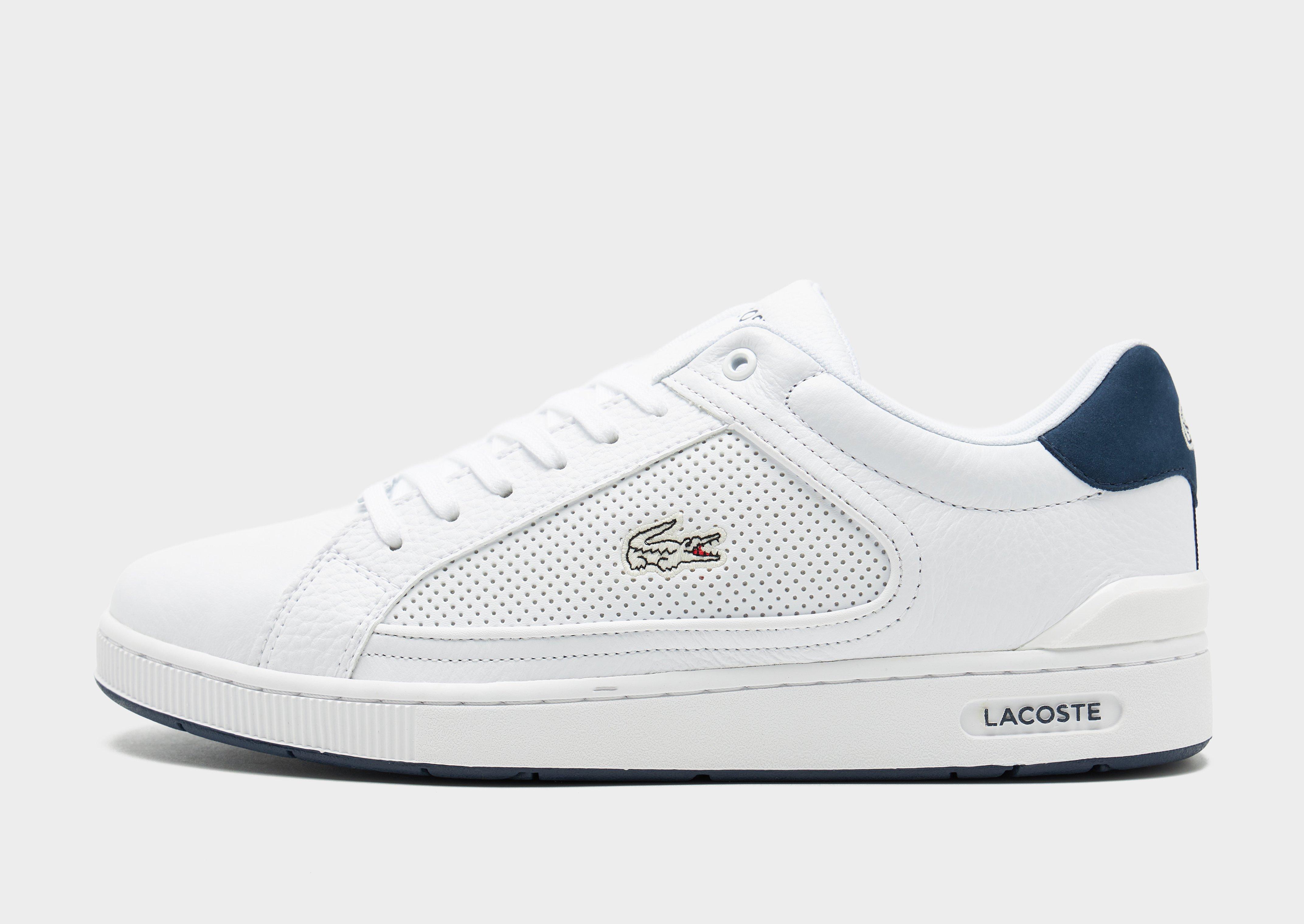 Update your everyday rotation with these men's Deviation shoes from Lacoste. Landing in a White colourway with Navy details, these JD-exclusive sneakers have a smooth, durable leather upper for lasting wear. They have breathable perforated panels at the sidewalls, and a lace closure with padding around the ankle collar for a secure fit. They sit on a cushioned midsole for essential comfort, while a tough rubber outsole delivers grippy traction. Finished up with signature Lacoste branding throughout. Style Code: 50SMA0139042