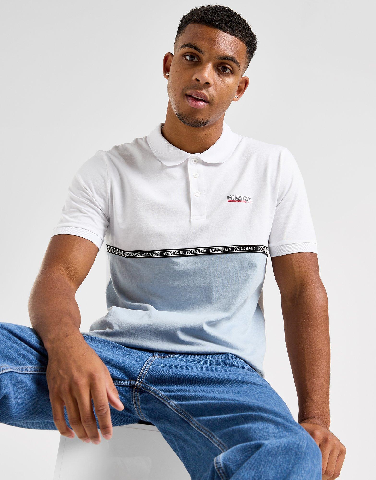 THIS PRODUCT IS PART OF OUR 2 FOR £25 OFFER. THE OFFER WILL AUTOMATICALLY APPLY WHEN YOU ADD TWO QUALIFYING PRODUCTS TO YOUR BASKET. For weekend-ready style, keep it JD-exclusive with this men's Adder Polo Shirt from McKenzie. In a White and Grey colour block design, this lightweight polo is made from soft cotton fabric for essential comfort. It features a three-button placket and spread collar, while the short sleeves have ribbed cuffs to tailor the fit. Finished up with contrasting McKenzie taping across the chest and signature McKenzie branding above. Machine washable. | Our model is 6'1" with a 39" chest and wears a size medium.