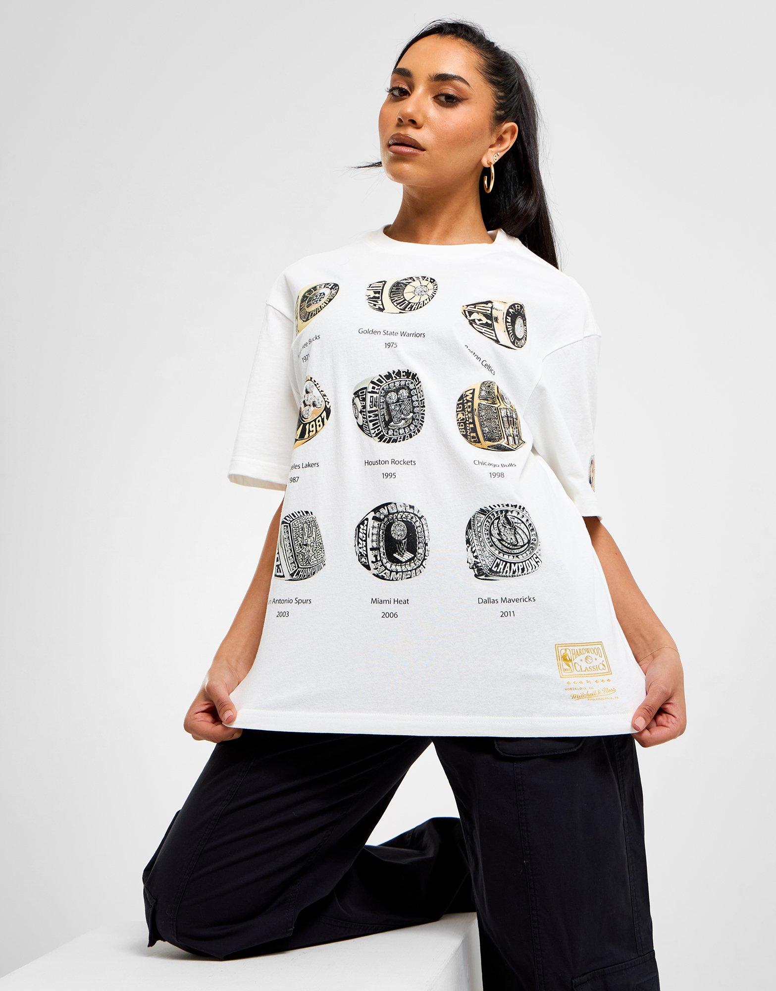 Step up your staples with this women's NBA Multi Ring Oversized T-Shirt from Mitchell & Ness. Mitchell & Ness, a Philadelphia-born sportswear brand since 1904, epitomizes authenticity and nostalgia, crafting premium, vintage-inspired apparel that pays homage to iconic moments in sports history.