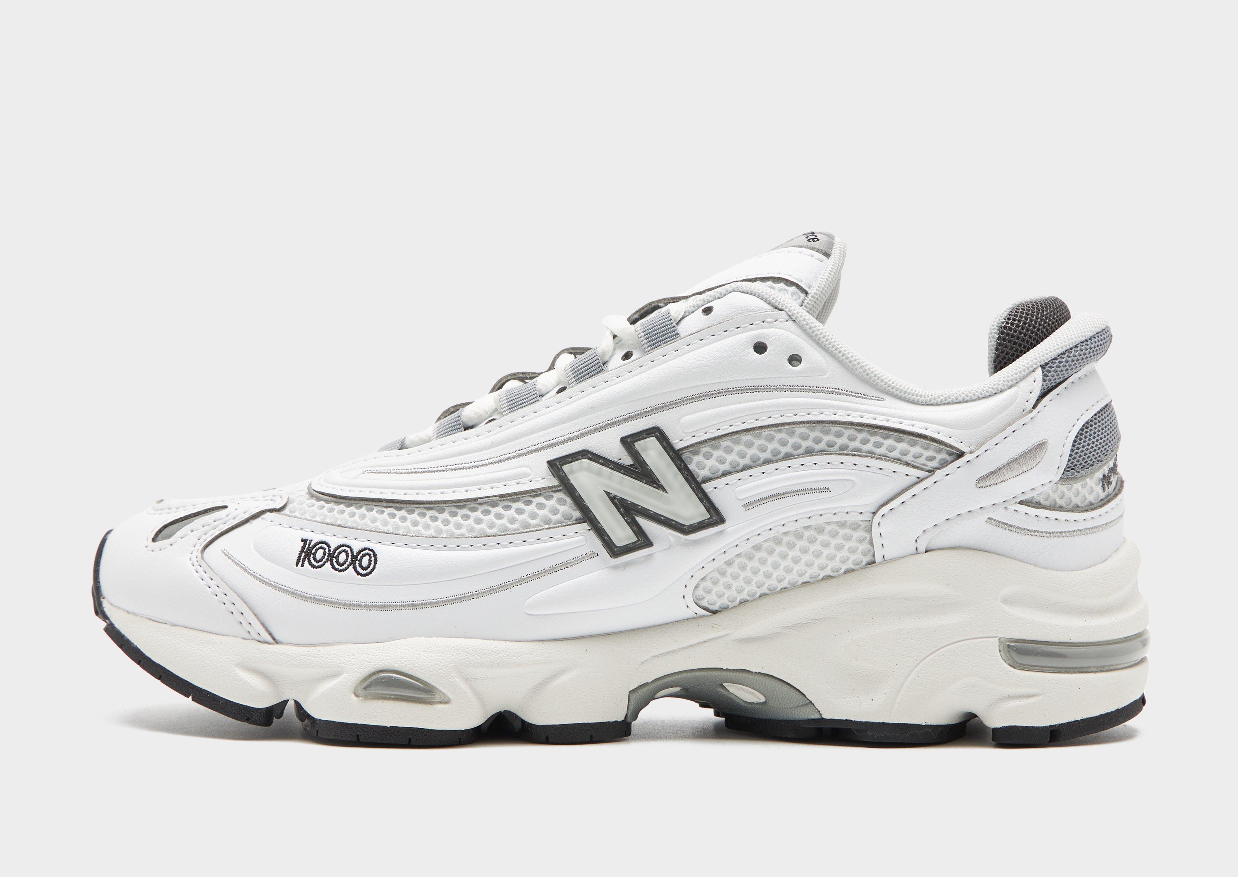 Rep a reimagined retro look with these men's 1000 sneakers from New Balance. Landing in a White colourway with Grey details, these sneakers have a mesh base and an inverted synthetic overlay design with mesh underlays to keep them breathable. Underfoot, sculpted midsole details and ABZORB technology in the heel and forefoot delivers premium cushioning, while Stability Web outsole tech provides arch support and extra grip as you step out on the streets. Finishing up, they're complete with embroidered details, reflective accents and the iconic 'N' logo on the sidewalls. Style Code: M1000D
