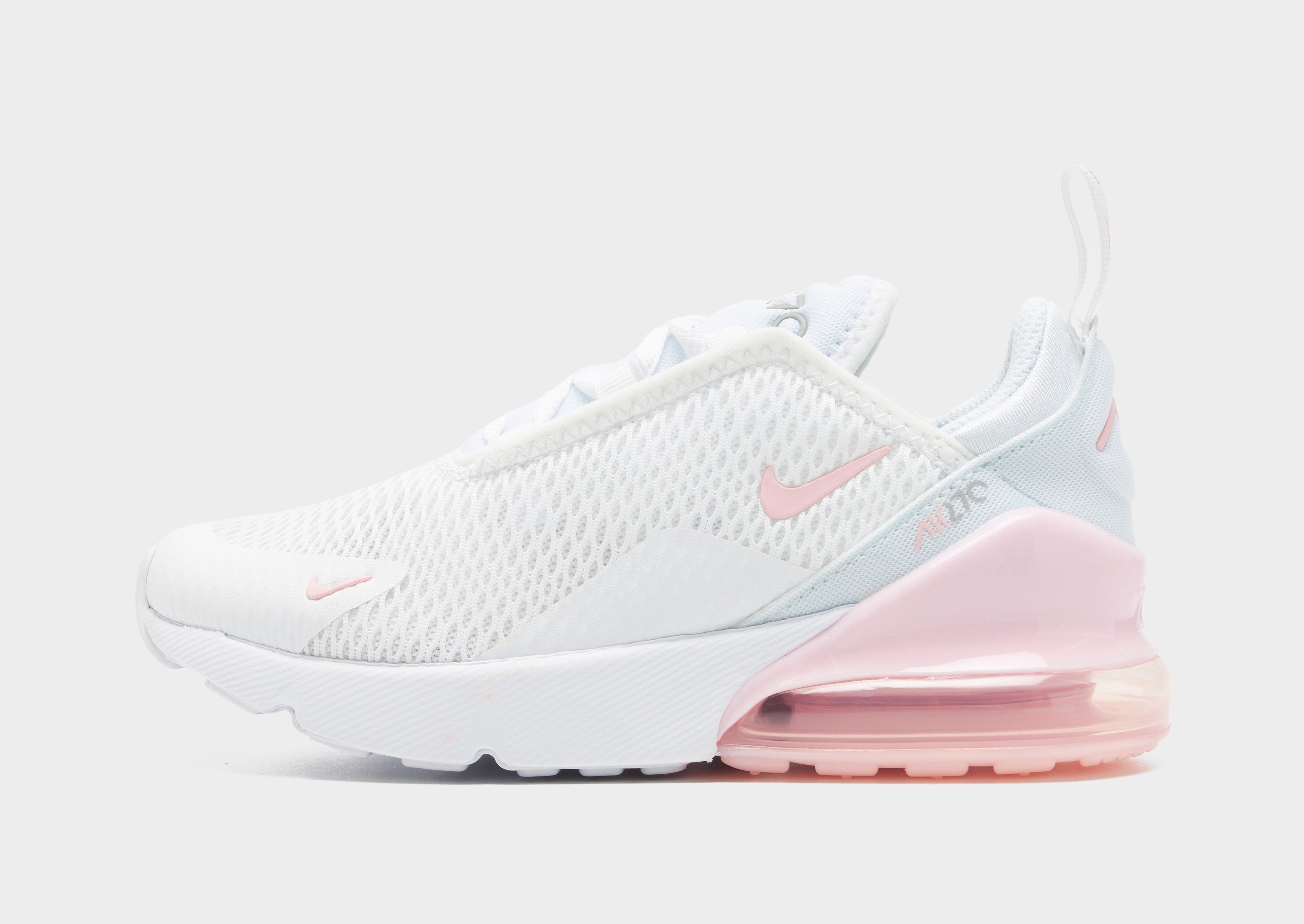 Representing the next gen of Air Max, these children's Air Max 270 shoes from Nike are equipped with the tallest heel counter to date. Taking inspiration from the Air 180 and Air Max 93, the 270 is designed purely as a lifestyle sneak. Built with a bootie-style knit upper, these lightweight sneakers come in a White colourway with Pink details and combine solid and mesh panelling for essential ventilation. Sat on a Max Air unit that measures 32mm, they're bringing next-level cushioned comfort - with 270 degrees of visible Air! With a lace-up fastening for a locked in fit, they're finished with the signature Swoosh to the sidewalls and Air 270 branding to the tongue and heel overlay. Style Code: AO2372-122