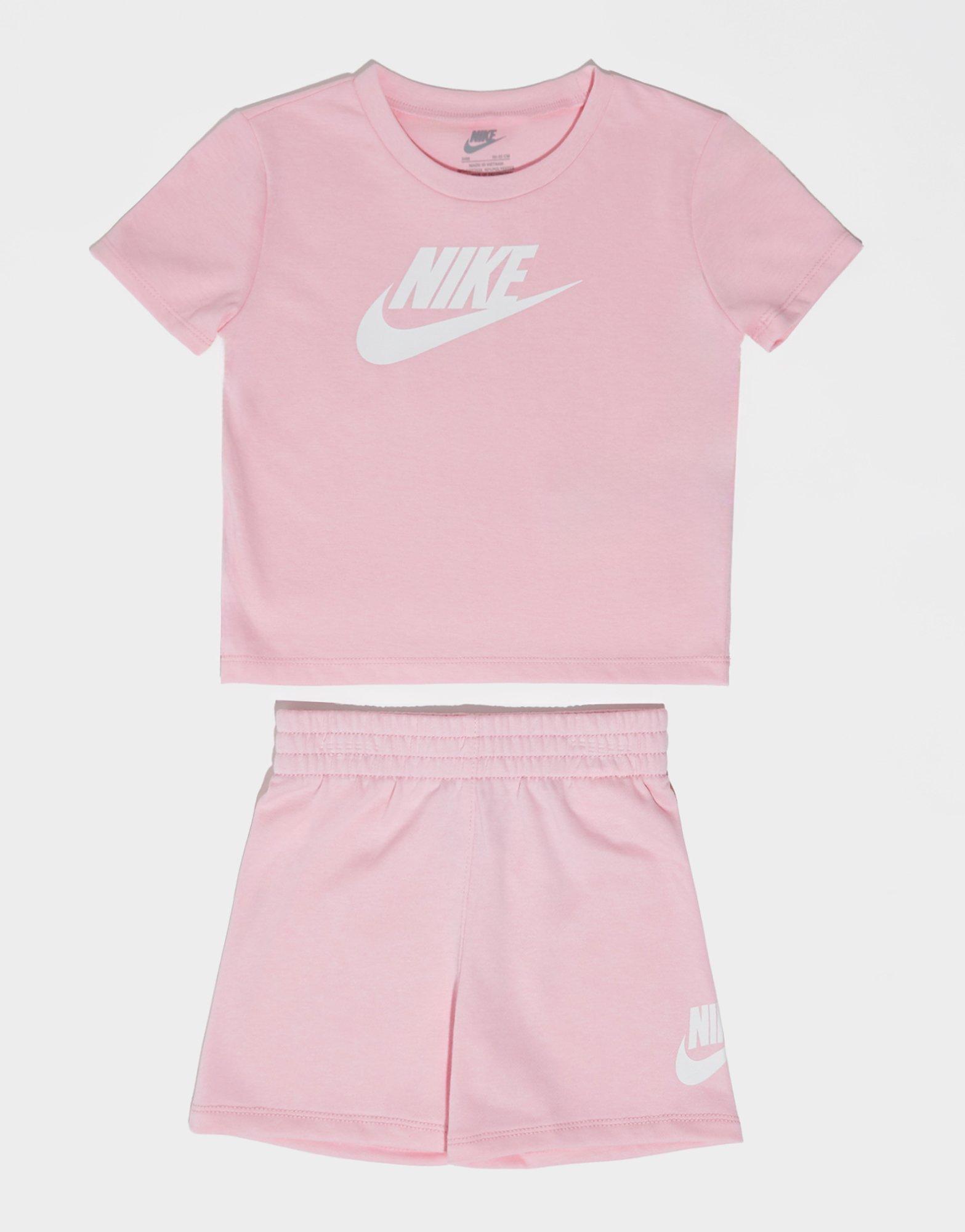 Get them started early with this infant's Nike Club T-Shirt and Shorts Set, exclusive to JD for mini sportswear style. Designed with a standard fit for comfort and mobility, this set features high brand read detailing on a pink base with white accents. Made for active toddlers, the soft fabric ensures all-day wearability during play or adventures. A perfect gift for little Nike fans.