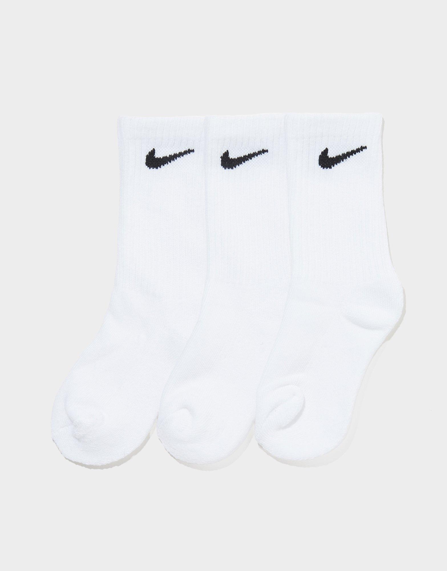 Keep things comfy wherever you step with this kids 3 Pack Futura Crew Socks from Nike. In a fresh white colourway, they're made from a comfy cotton blend for a snug wear all day. With ribbed ankle cuffs for a stay-put fit, they're finished with contrasting black Swoosh branding to the cuff.